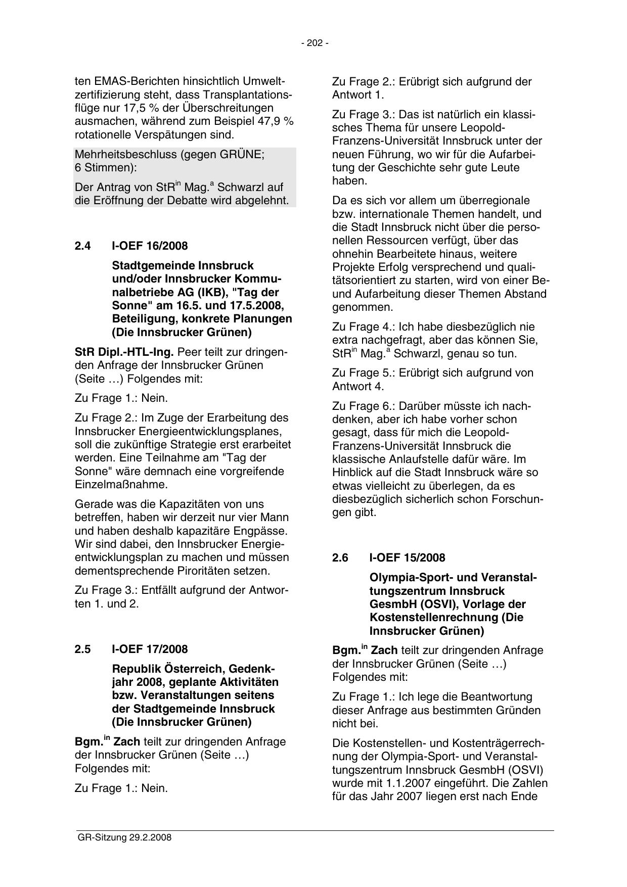 StR Dipl.-HTL-Ing. Peer teilt zur dringenden Anfrage der Innsbrucker Grünen