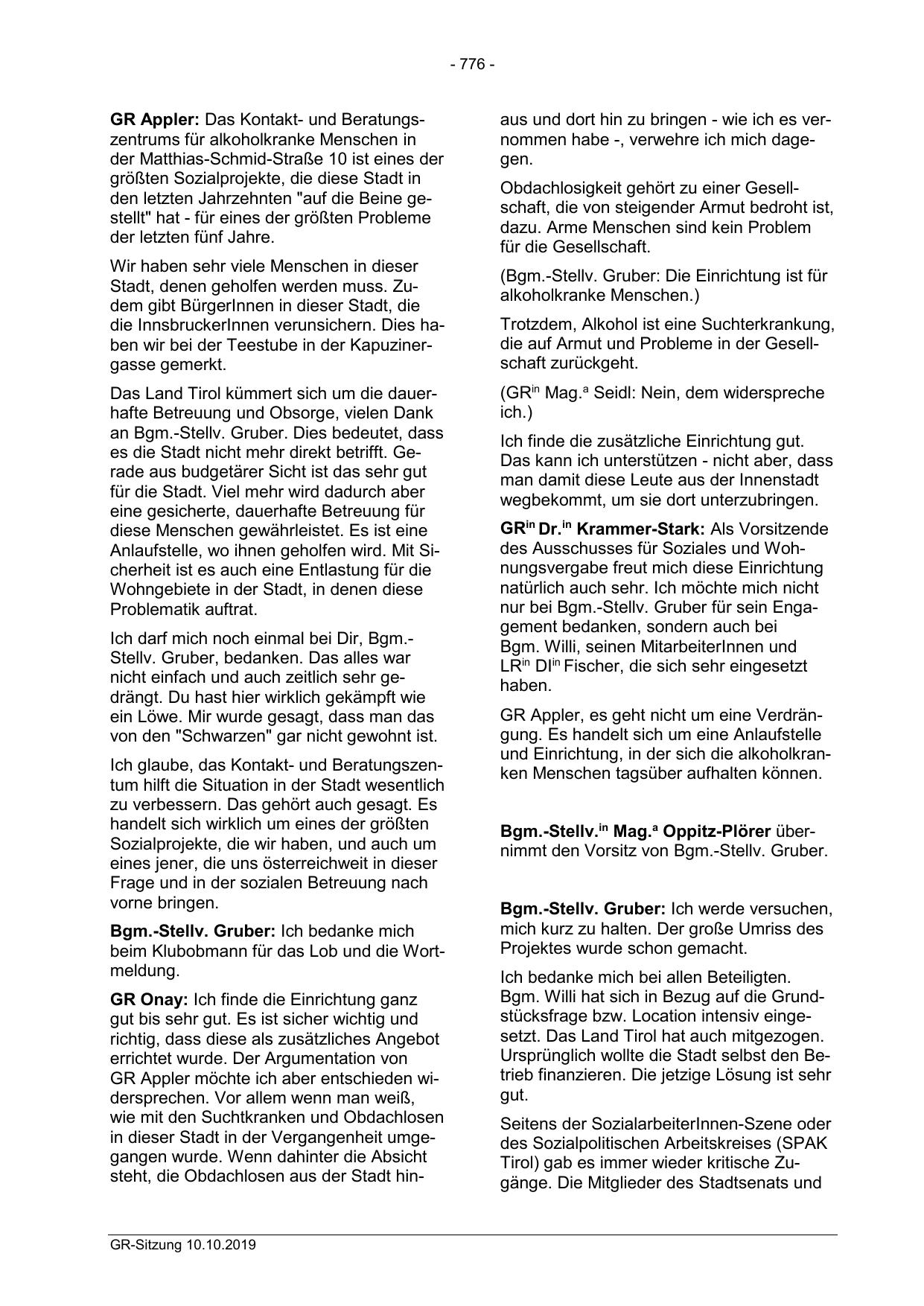 Tirol) gab es immer wieder kritische Zugänge. Die Mitglieder des Stadtsenats und