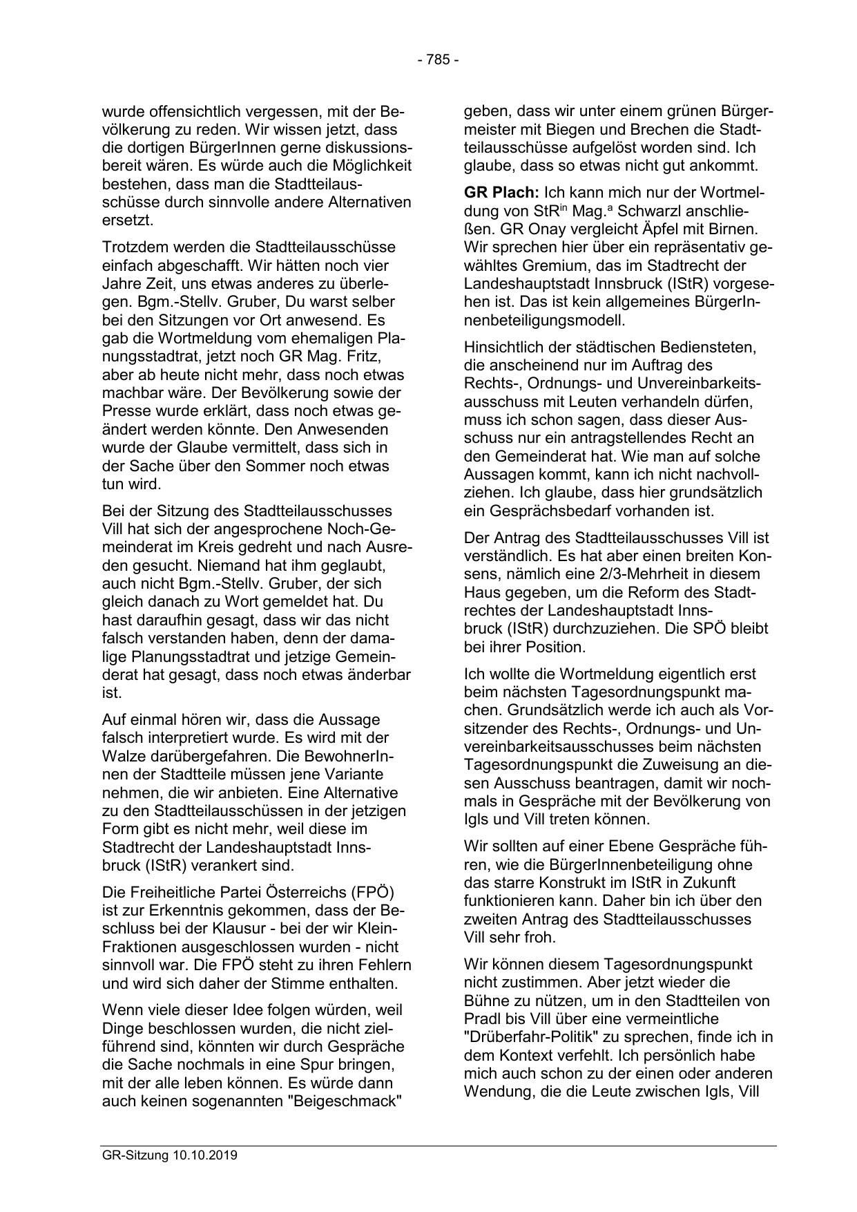 Haus gegeben, um die Reform des Stadtrechtes der Landeshauptstadt Innsbruck (IStR) durchzuziehen. Die SPÖ bleibt
