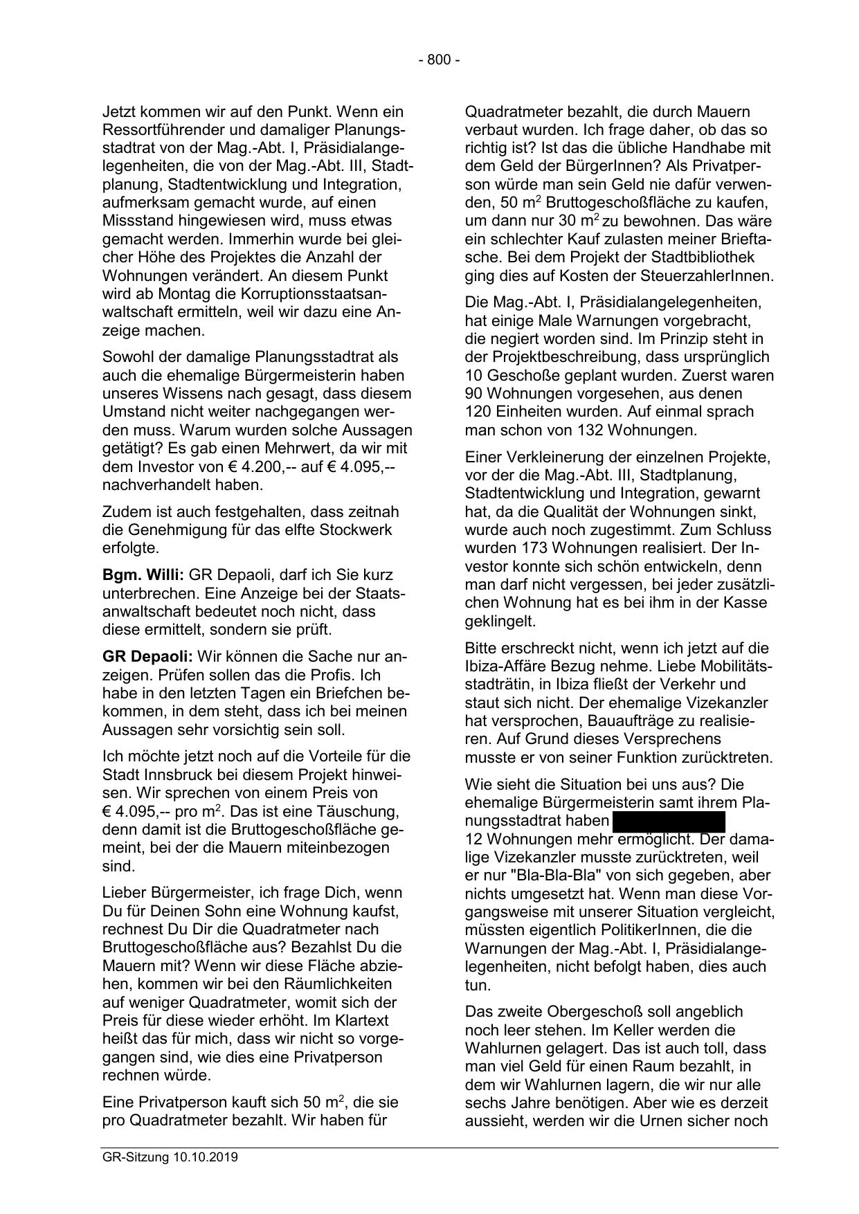 Bgm. Willi: GR Depaoli, darf ich Sie kurz