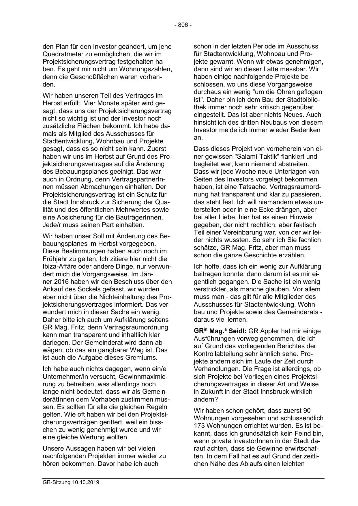 lange nicht bedeutet, dass wir als GemeinderätInnen dem Vorhaben zustimmen müssen. Es sollten für alle die gleichen Regeln