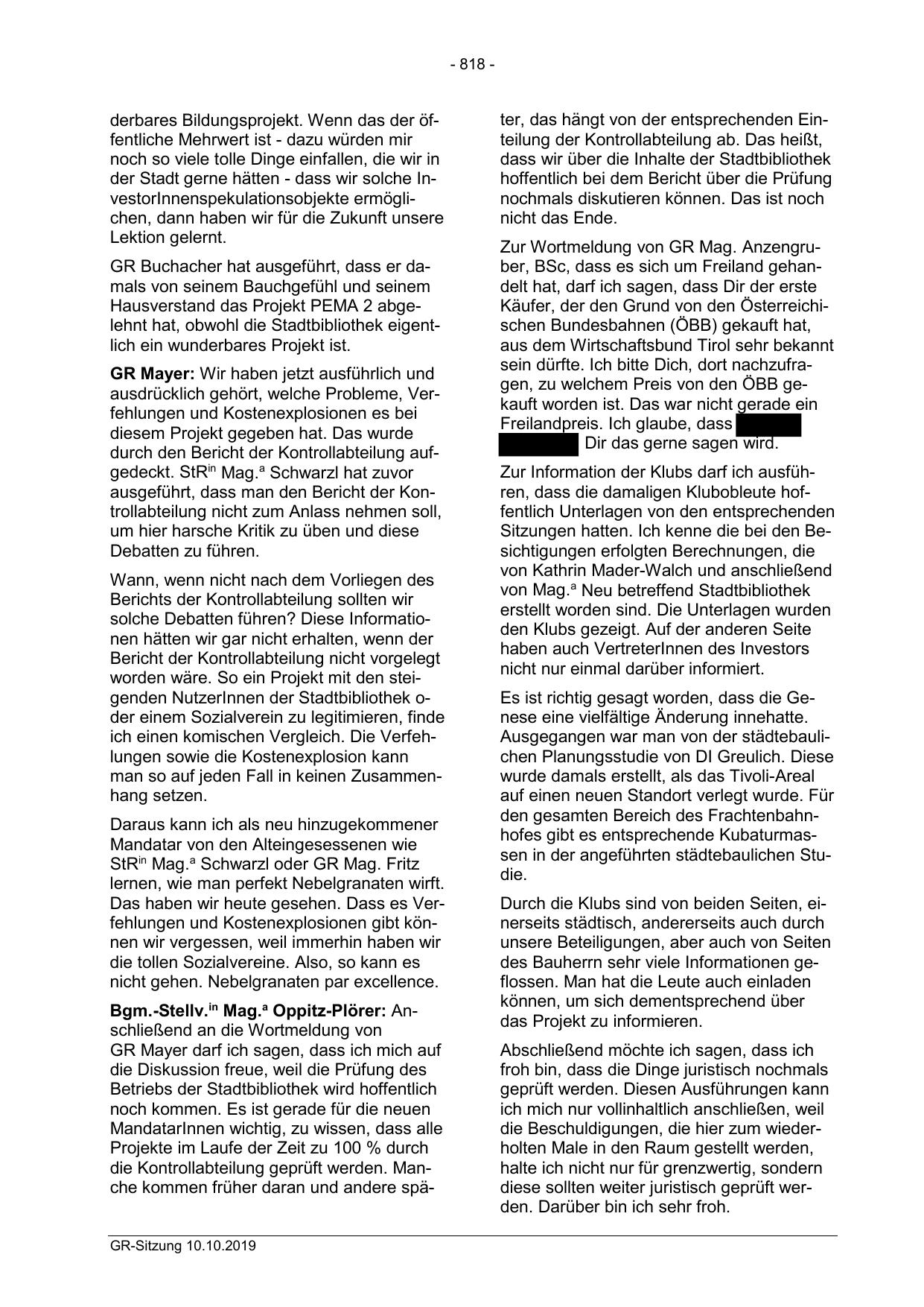 durch den Bericht der Kontrollabteilung aufgedeckt. StRin Mag.a Schwarzl hat zuvor