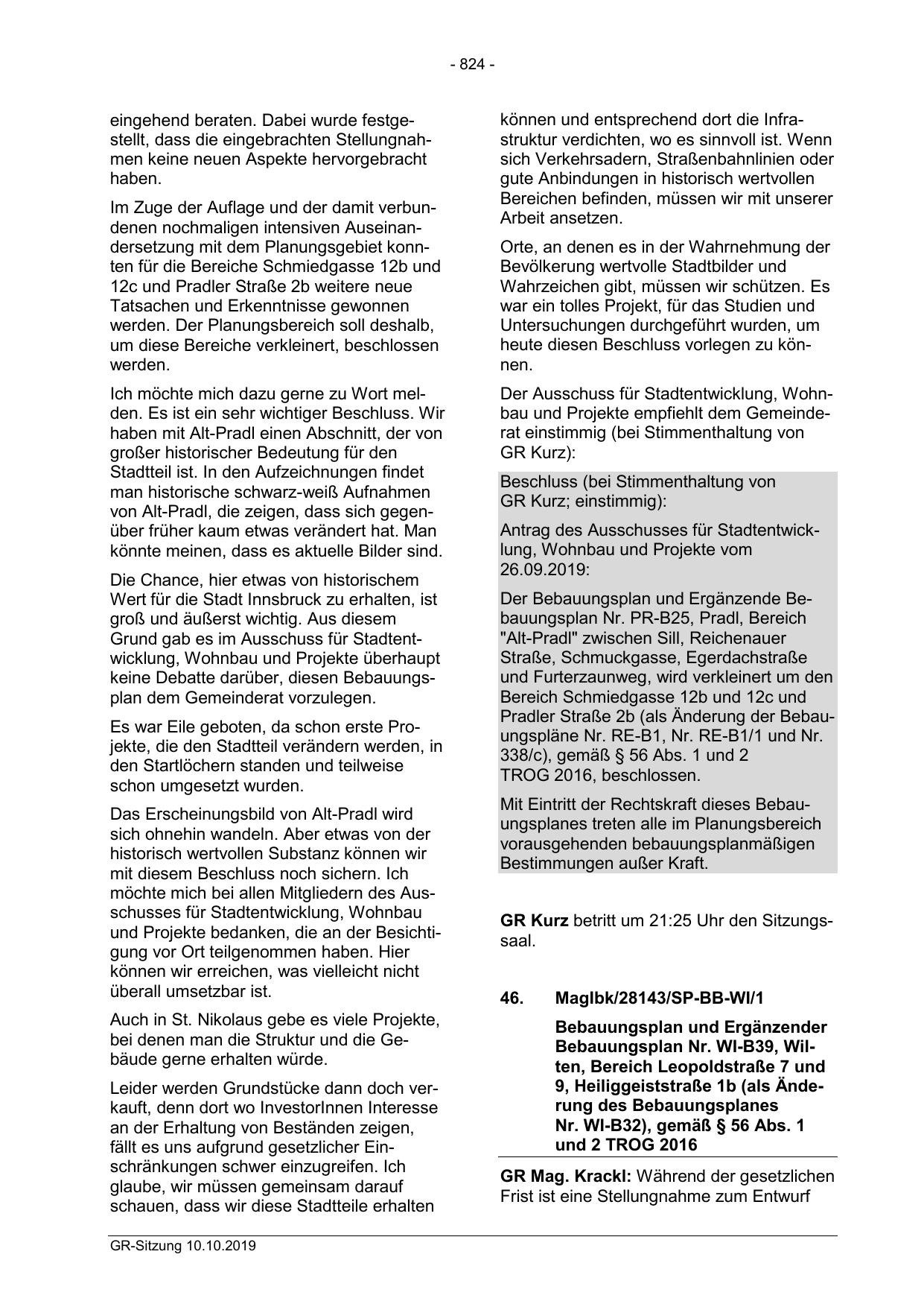 GR Kurz betritt um 21:25 Uhr den Sitzungssaal.