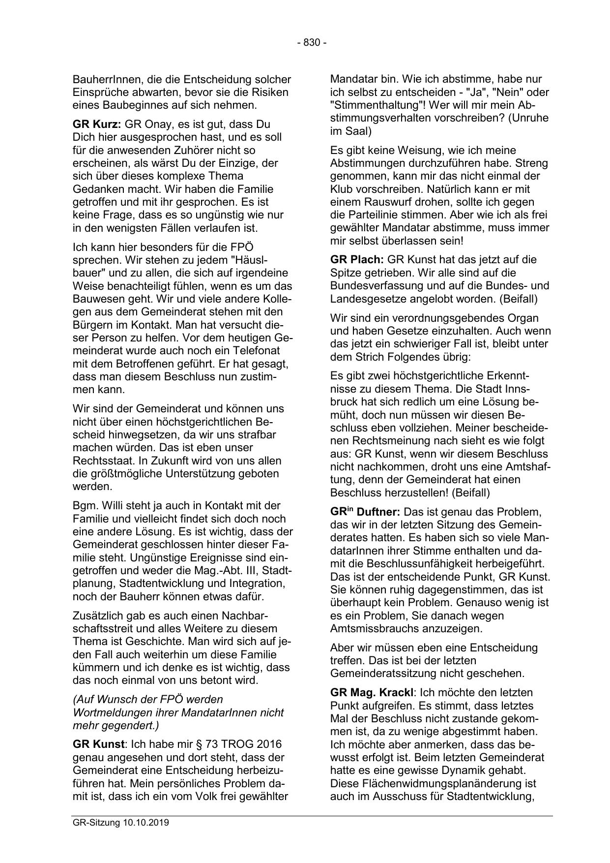 GR Kunst: Ich habe mir § 73 TROG 2016