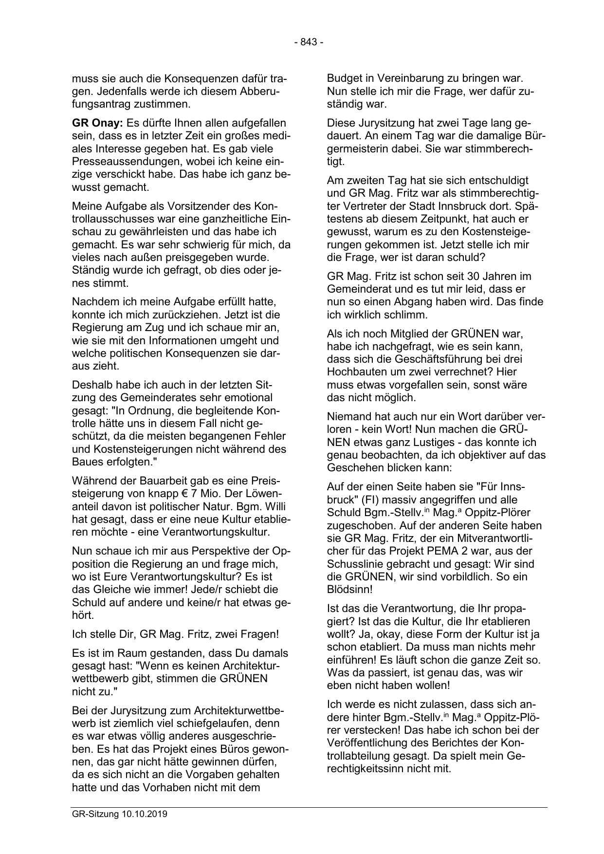 und GR Mag. Fritz war als stimmberechtigter Vertreter der Stadt Innsbruck dort. Spätestens ab diesem Zeitpunkt, hat auch er