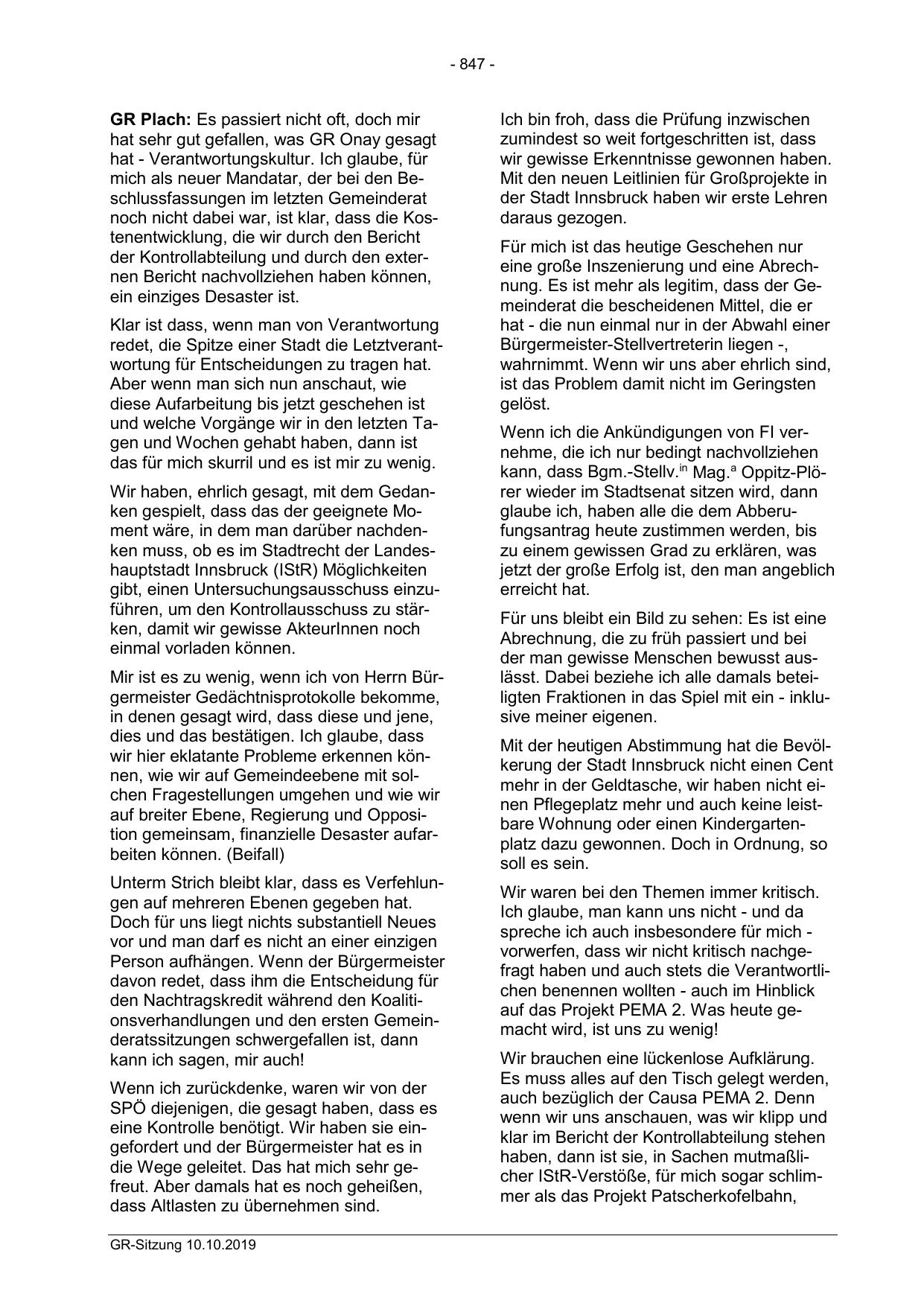 Wir haben, ehrlich gesagt, mit dem Gedanken gespielt, dass das der geeignete Moment wäre, in dem man darüber nachdenken muss, ob es im Stadtrecht der Landeshauptstadt Innsbruck (IStR) Möglichkeiten