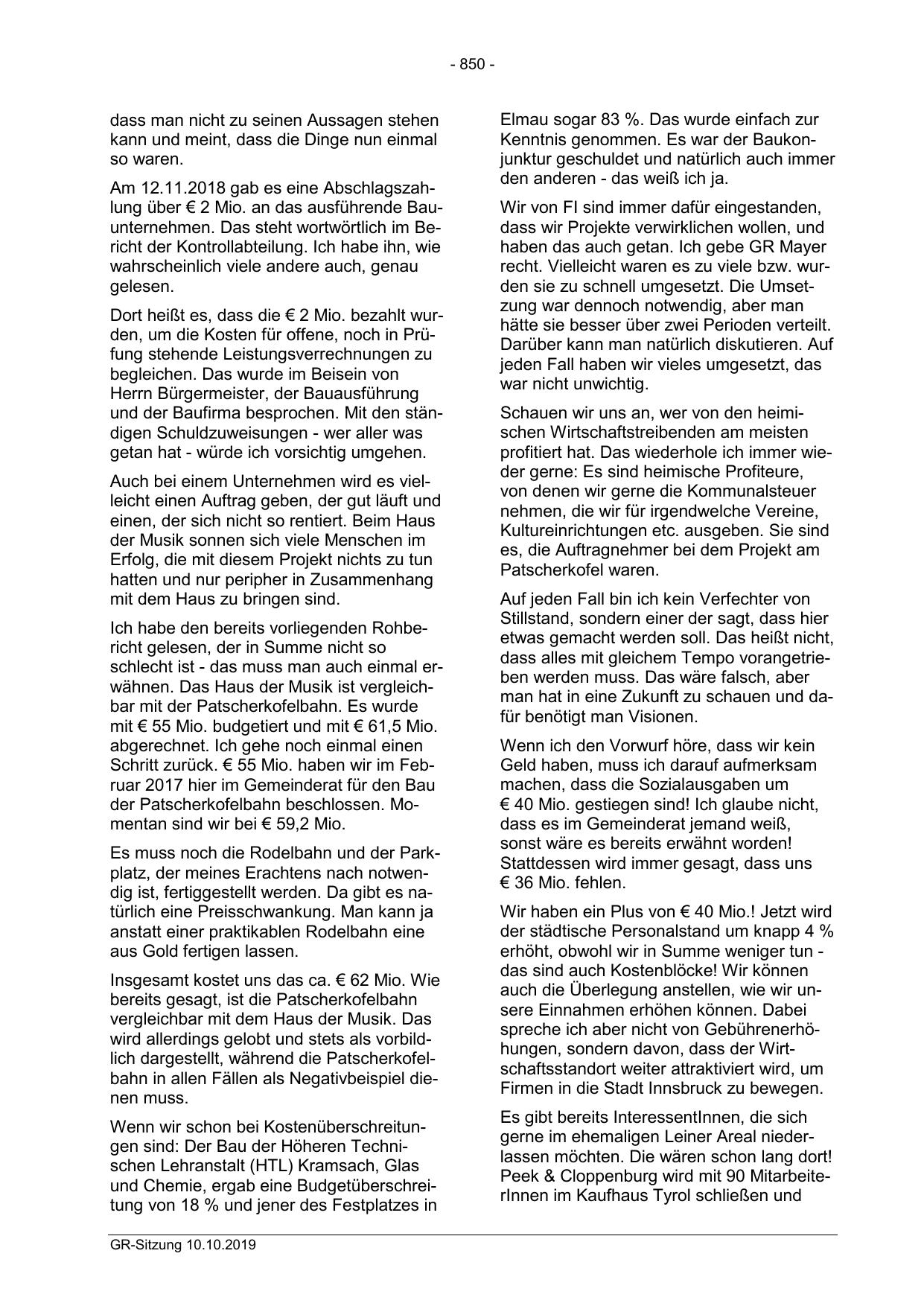 der Patscherkofelbahn beschlossen. Momentan sind wir bei € 59,2 Mio.