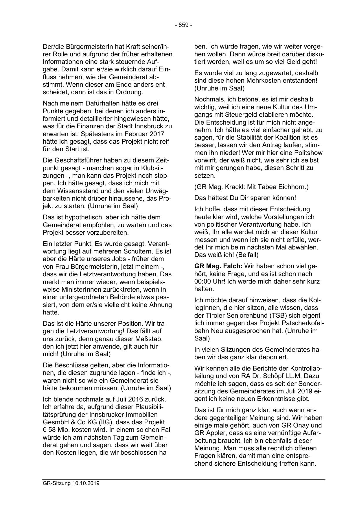 möchte ich sagen, dass es seit der Sondersitzung des Gemeinderates im Juli 2019 eigentlich keine neuen Erkenntnisse gibt.