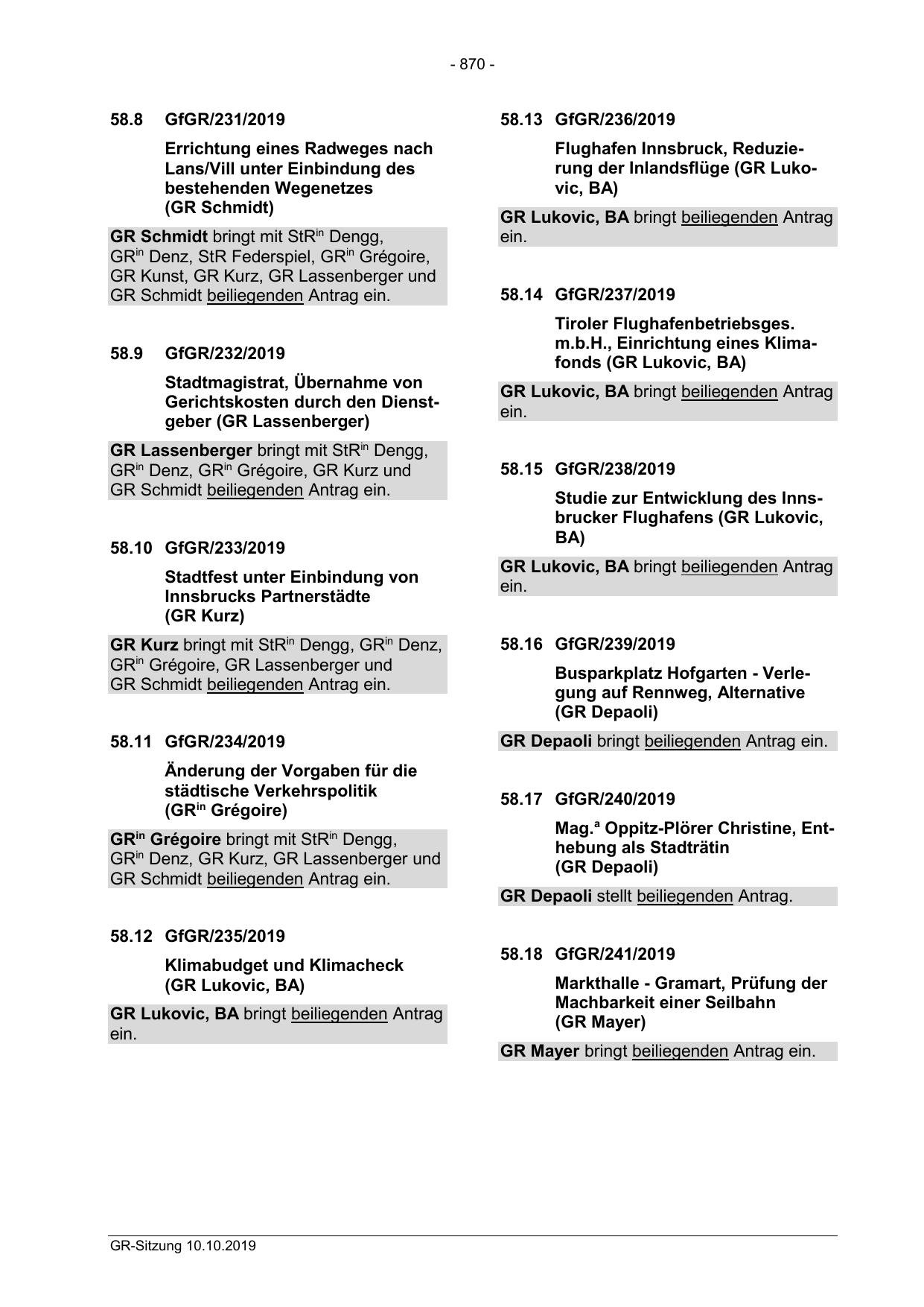 Flughafen Innsbruck, Reduzierung der Inlandsflüge (GR Lukovic, BA)