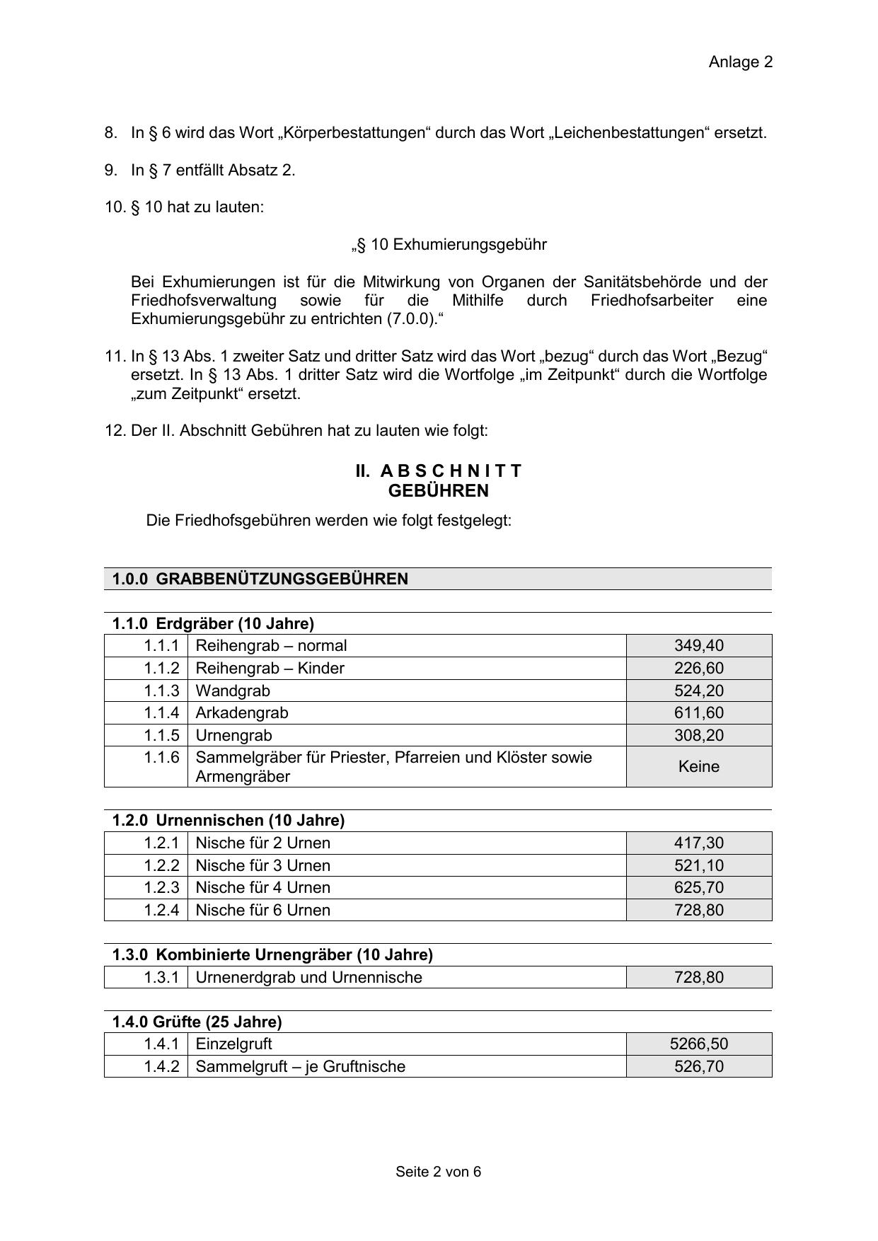 8. In § 6 wird das Wort „Körperbestattungen“ durch das Wort „Leichenbestattungen“ ersetzt.