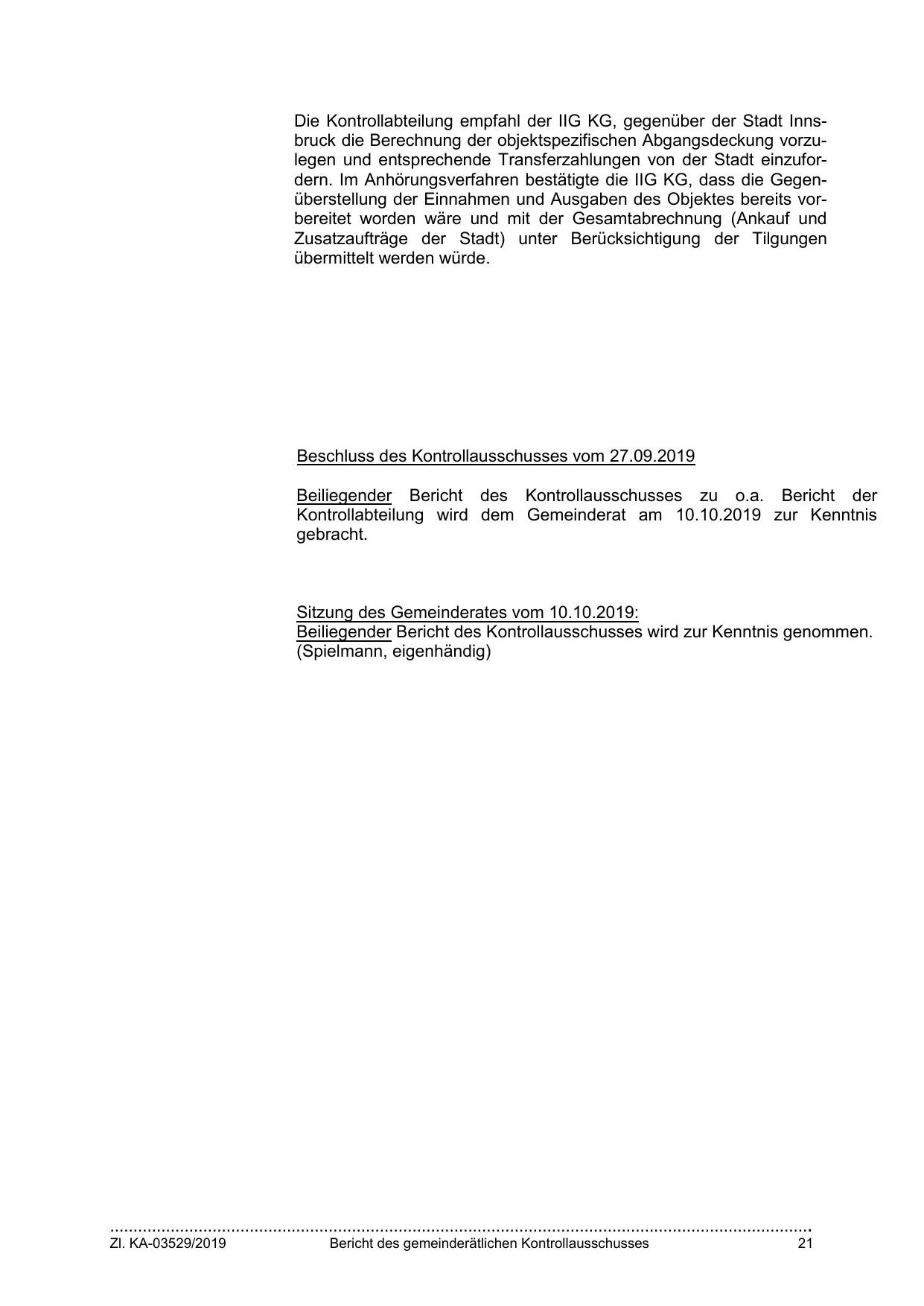 Beschluss des Kontrollausschusses vom 27.09.2019