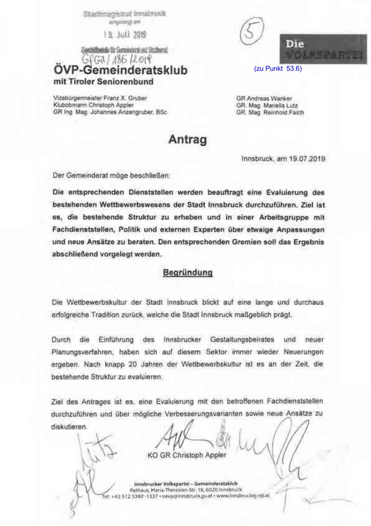 bestehenden Wettbewerbswesens der Stadt Innsbruck durchzuführen. Ziel ist