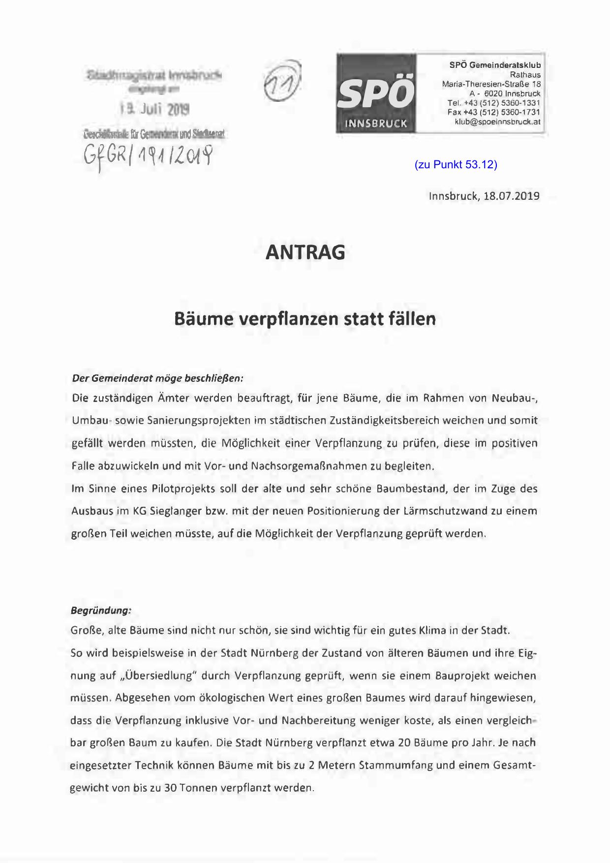 Die zuständigen Ämter werden beauftragt 1 für jene Bäume, die im Rahmen von Neubau-,