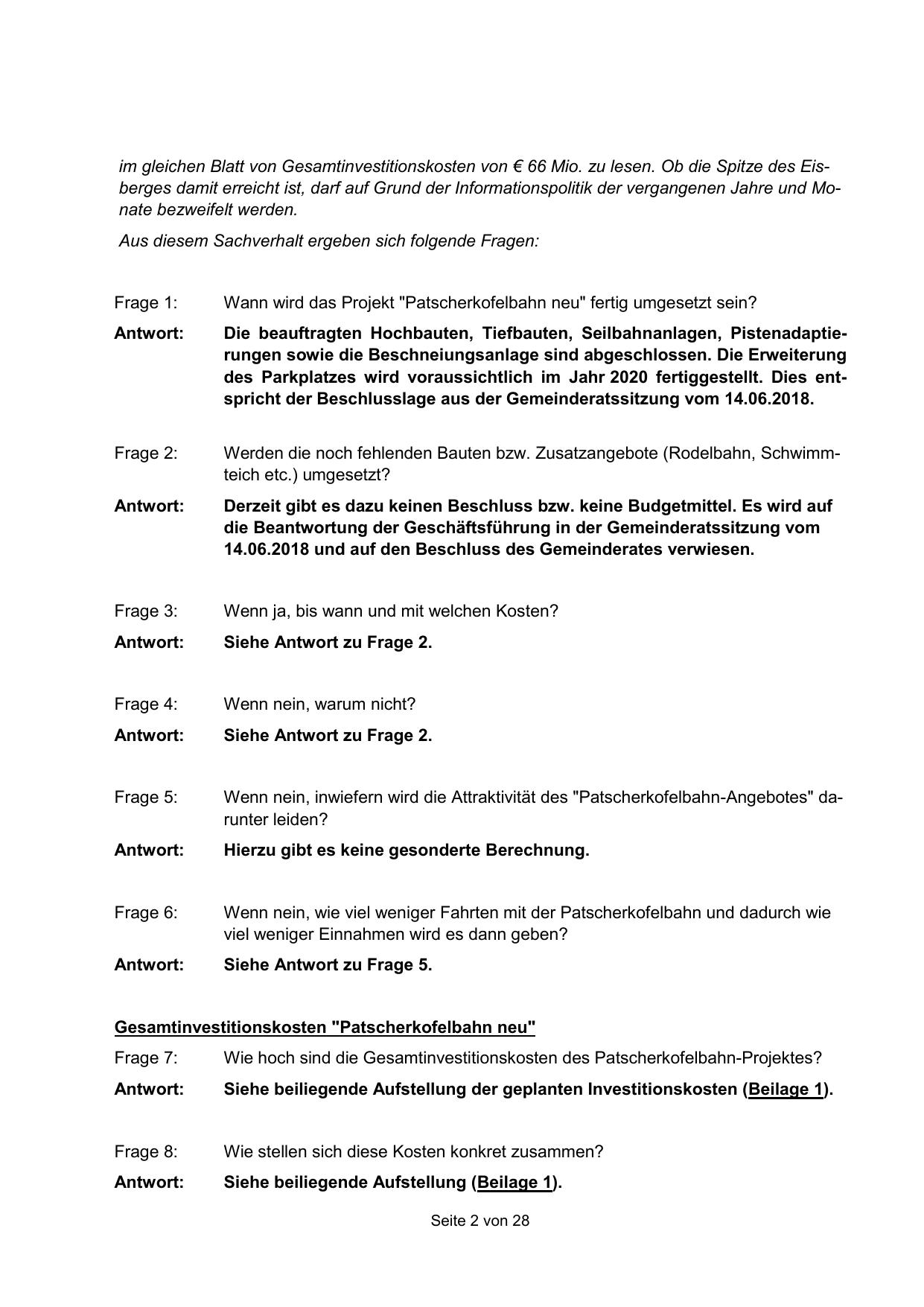 die Beantwortung der Geschäftsführung in der Gemeinderatssitzung vom
