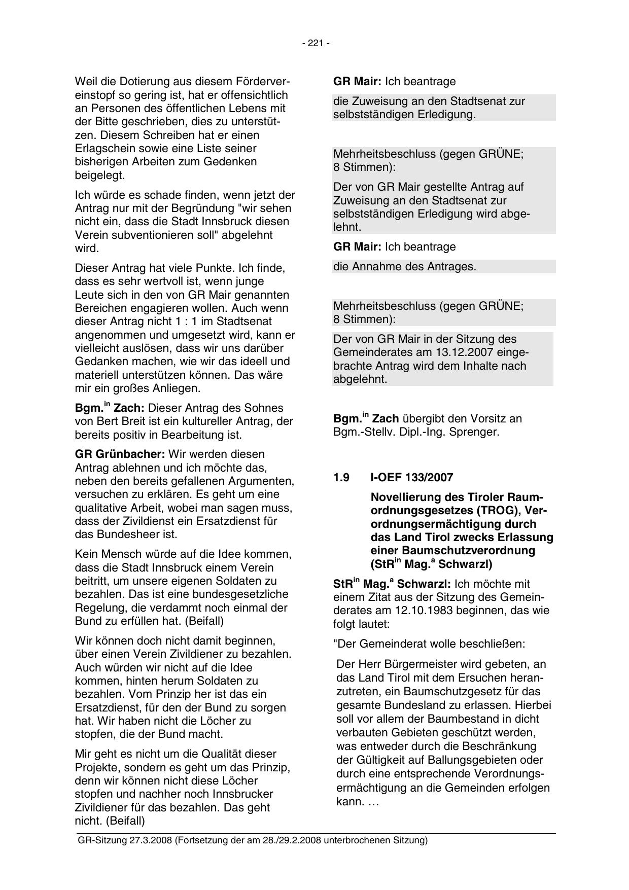 GR-Sitzung 27.3.2008 (Fortsetzung der am 28./29.2.2008 unterbrochenen Sitzung)
