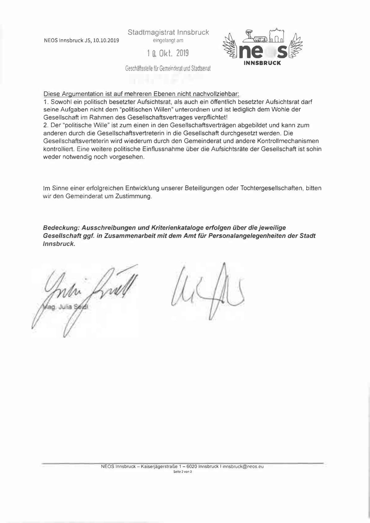 NEOS Innsbruck - Kaiserjägerstraße 1 - 6020 Innsbruck I innsbruck@neos.eu
