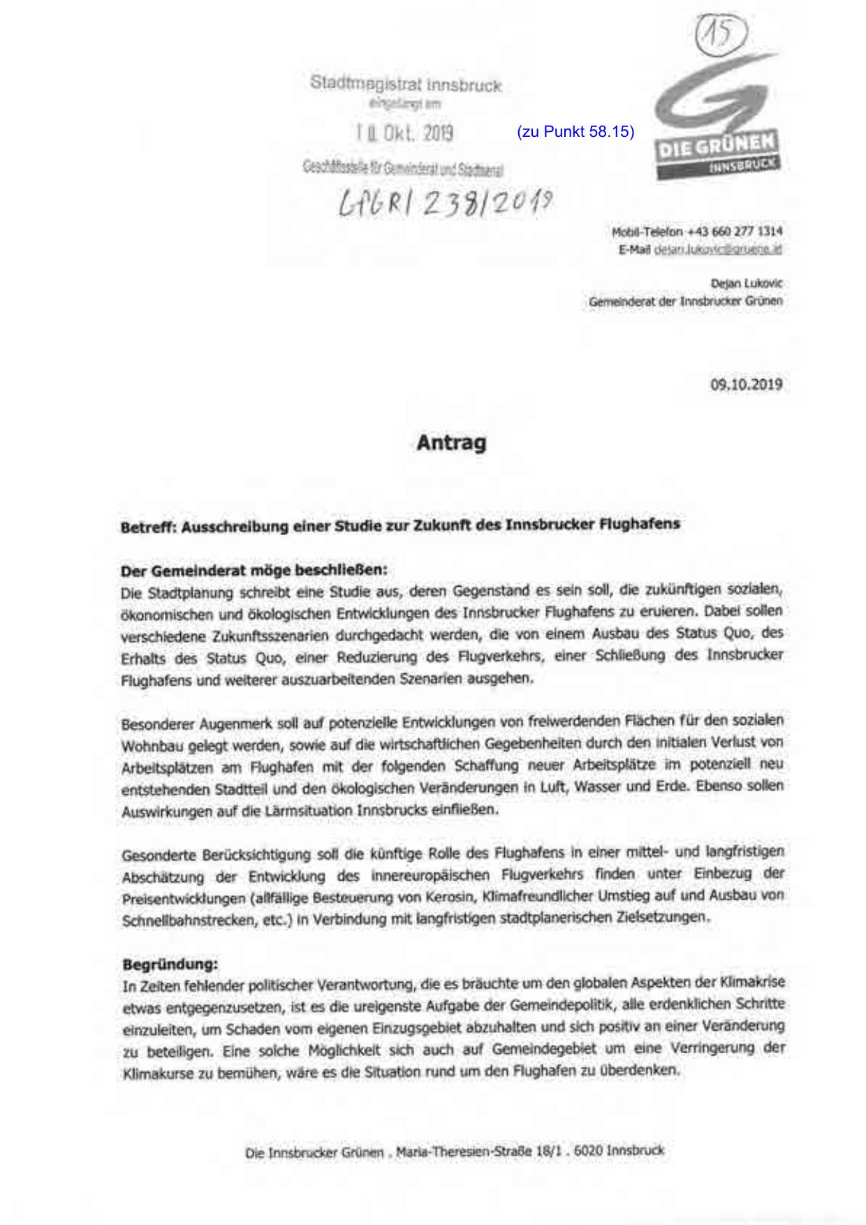 Betreff: Ausschreibung einer Studie zur Zukunft des Innsbrucker Flughafens