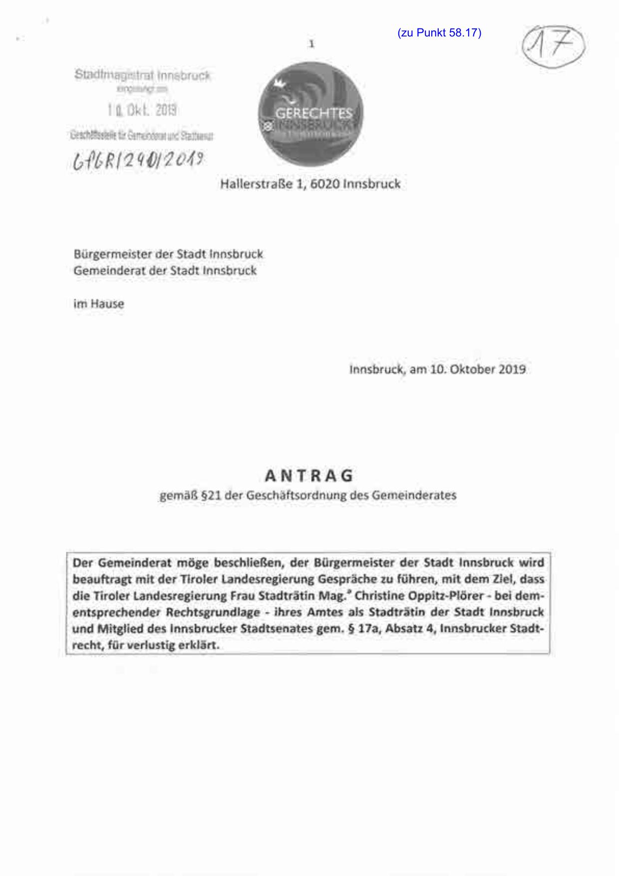 Der Gemeinderat möge beschließen, der Bürgermeister der Stadt Innsbruck wird