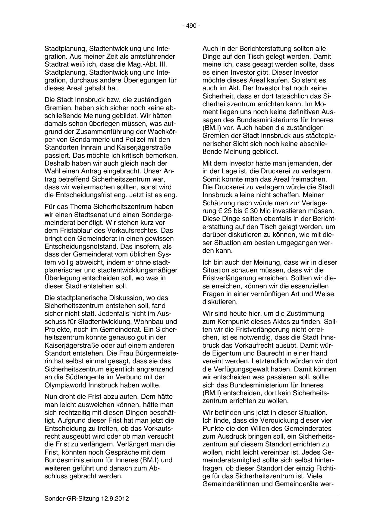 Sonder-GR-Sitzung 12.9.2012