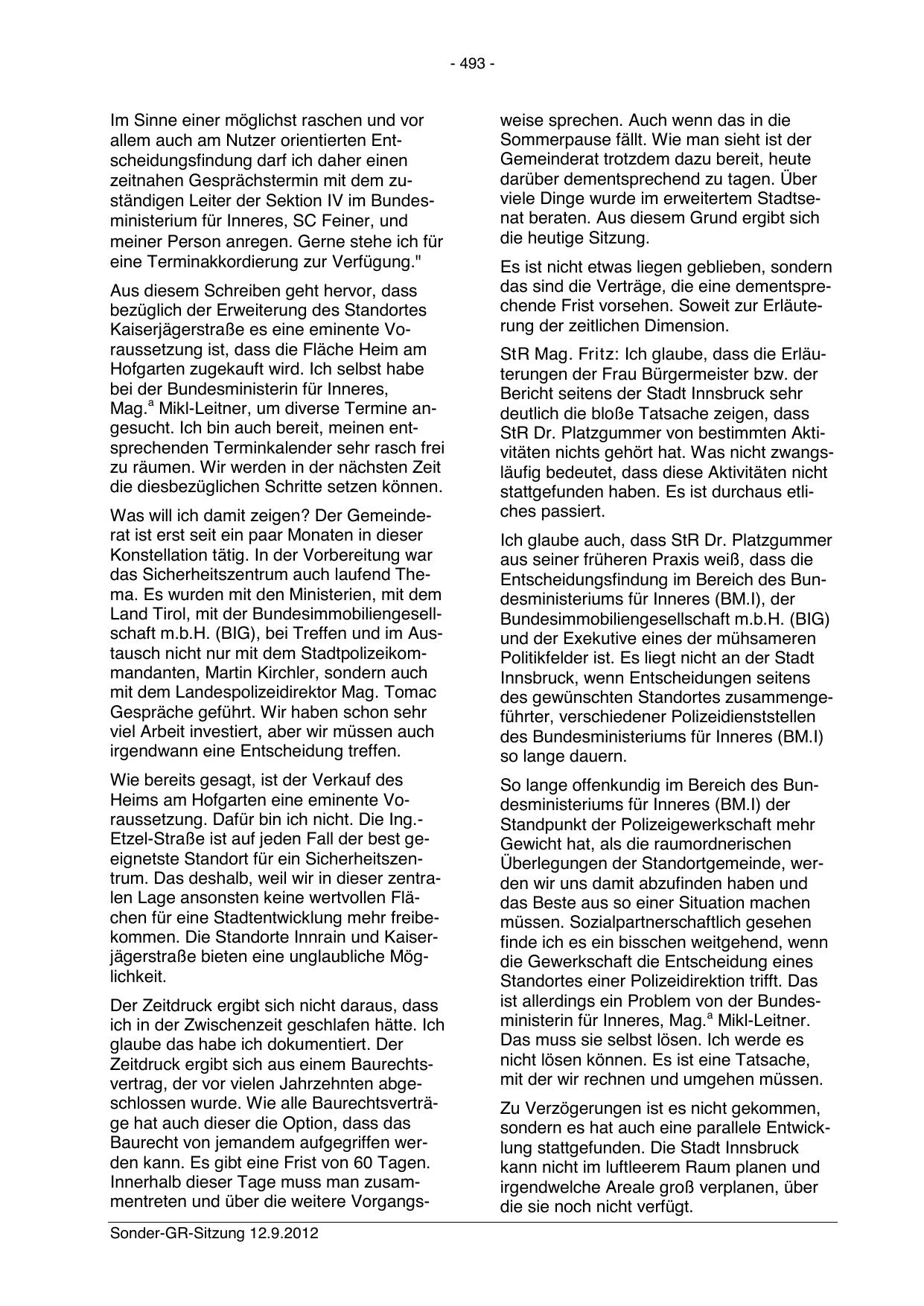 Innerhalb dieser Tage muss man zusammentreten und über die weitere VorgangsSonder-GR-Sitzung 12.9.2012