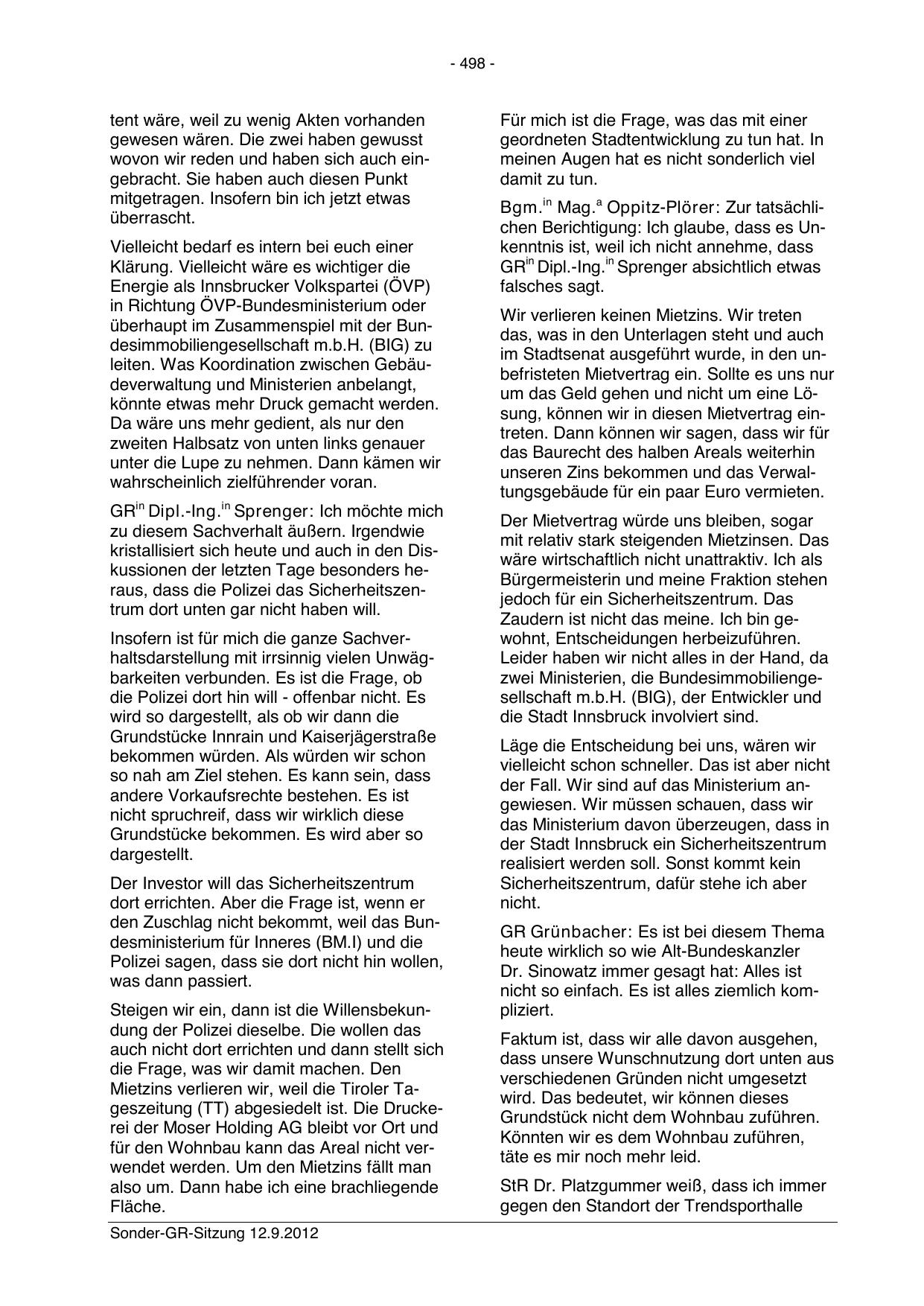 Sonder-GR-Sitzung 12.9.2012
