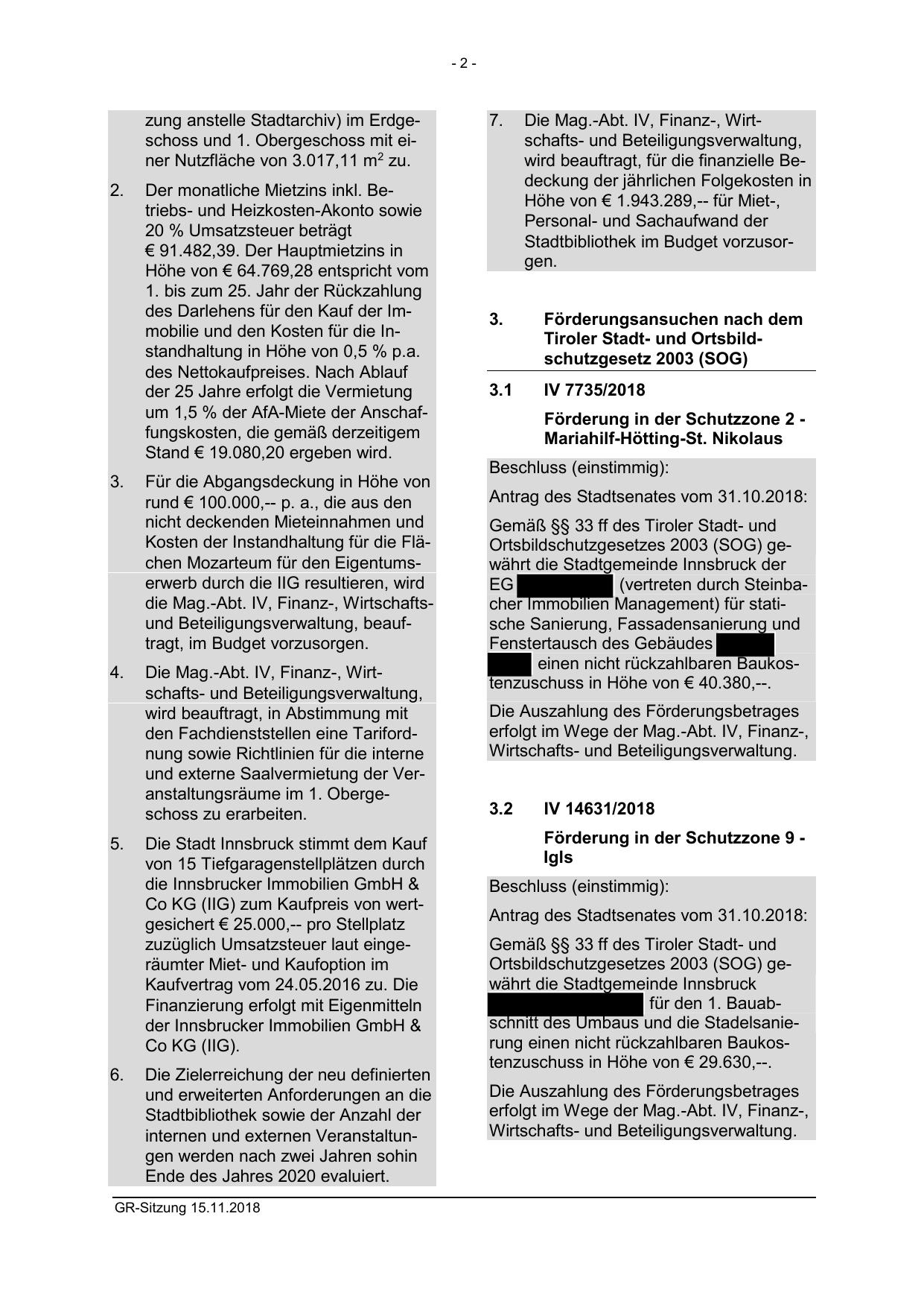 Ortsbildschutzgesetzes 2003 (SOG) gewährt die Stadtgemeinde Innsbruck der