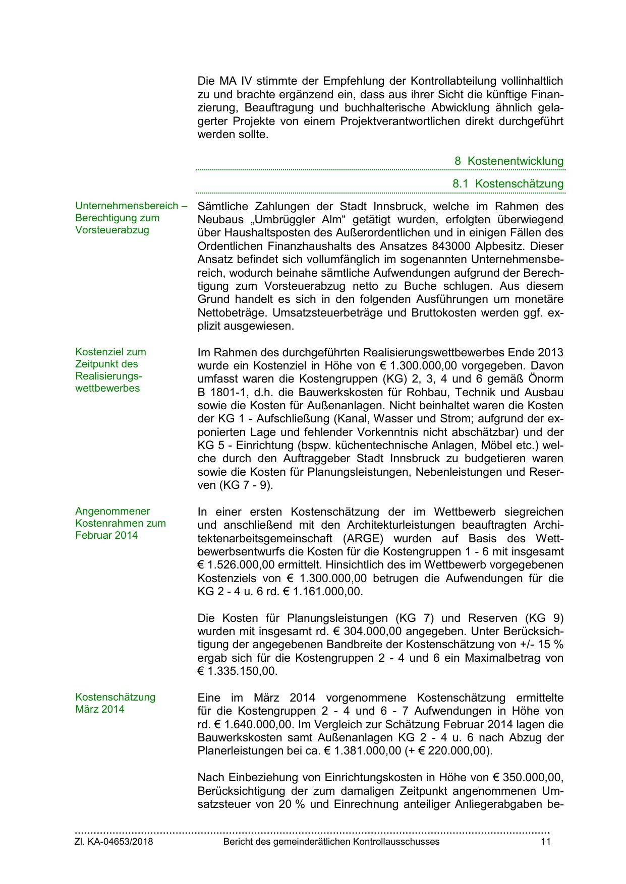 umfasst waren die Kostengruppen (KG) 2, 3, 4 und 6 gemäß Önorm
