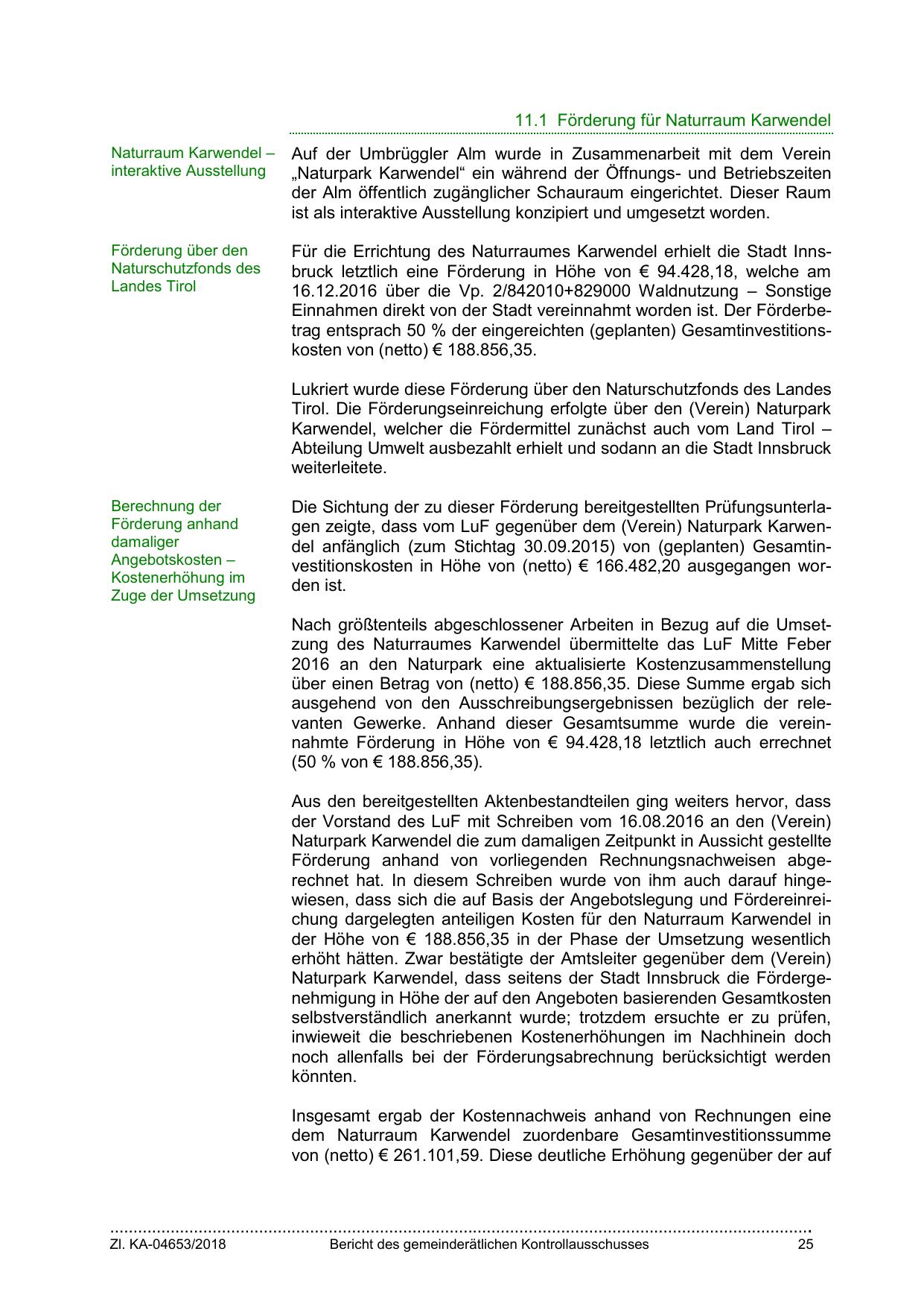 Für die Errichtung des Naturraumes Karwendel erhielt die Stadt Innsbruck letztlich eine Förderung in Höhe von € 94.428,18, welche am