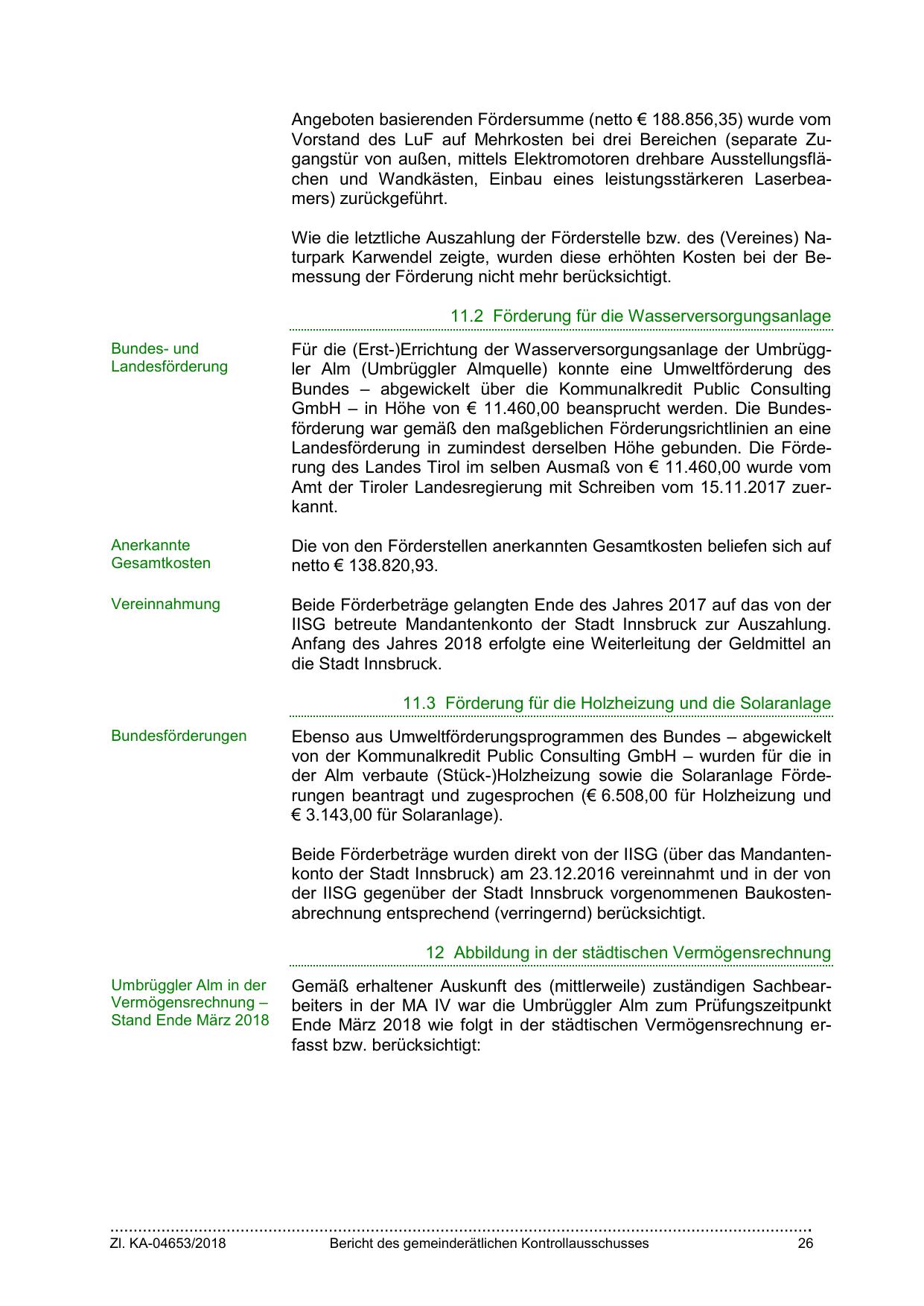 Landesförderung in zumindest derselben Höhe gebunden. Die Förderung des Landes Tirol im selben Ausmaß von € 11.460,00 wurde vom