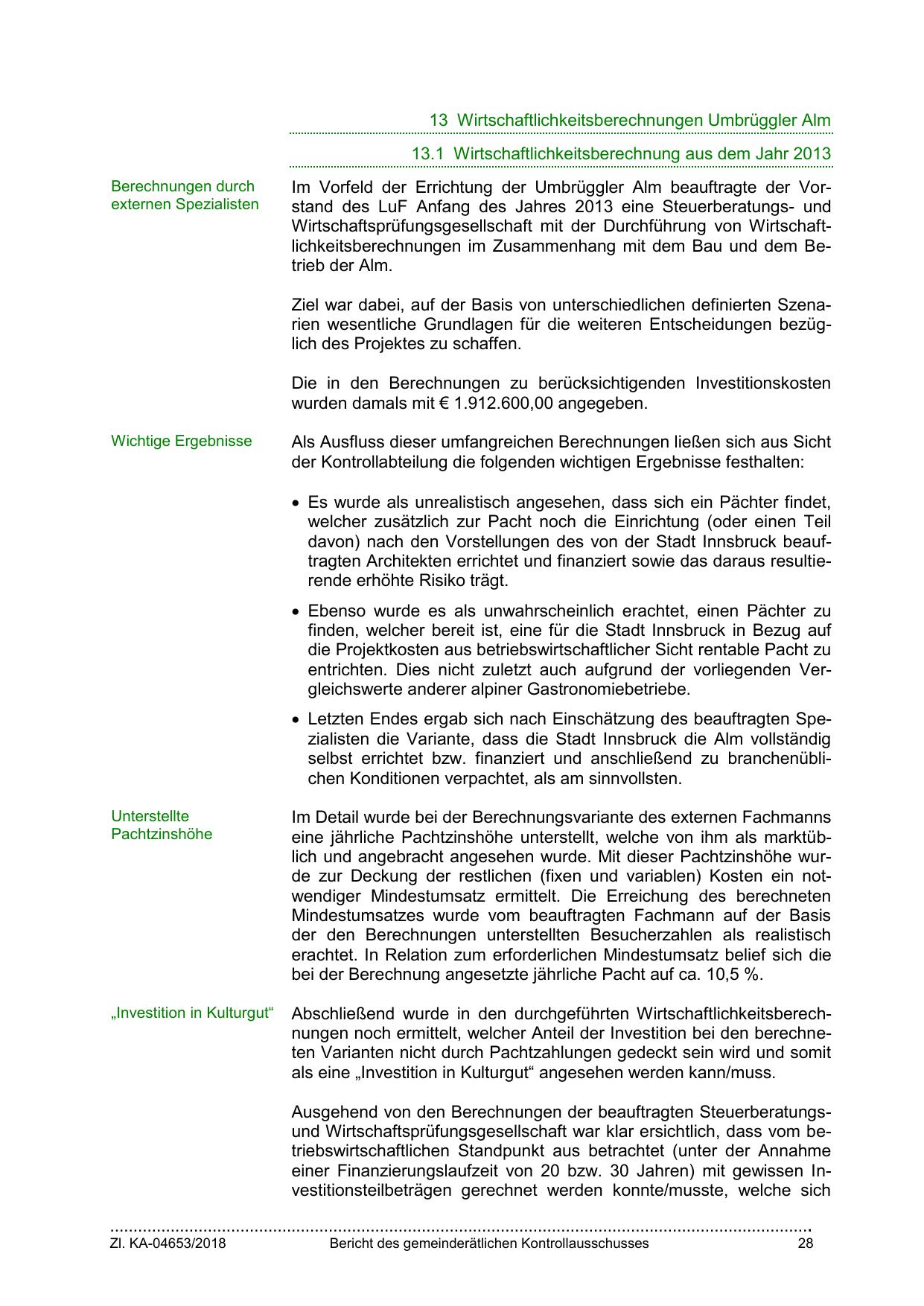  Letzten Endes ergab sich nach Einschätzung des beauftragten Spezialisten die Variante, dass die Stadt Innsbruck die Alm vollständig