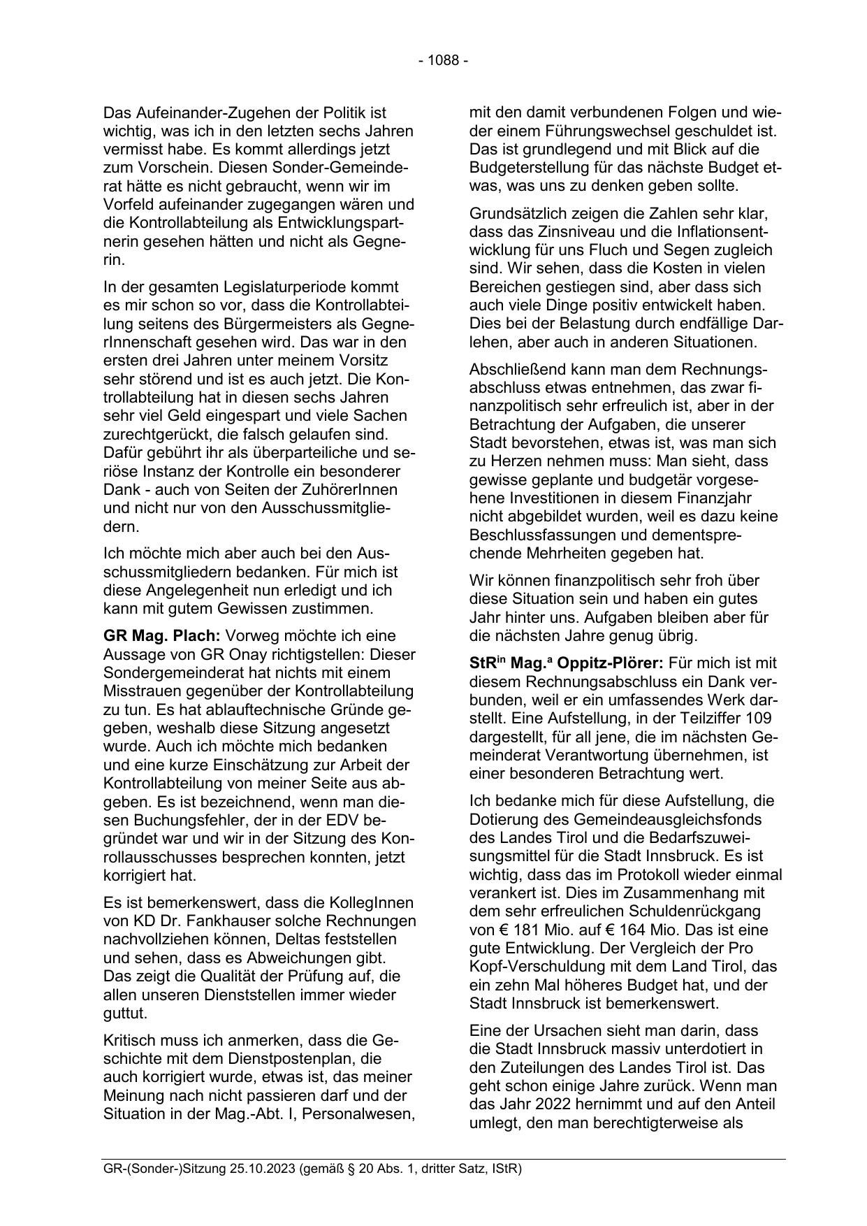 GR-(Sonder-)Sitzung 25.10.2023 (gemäß § 20 Abs. 1, dritter Satz, IStR)