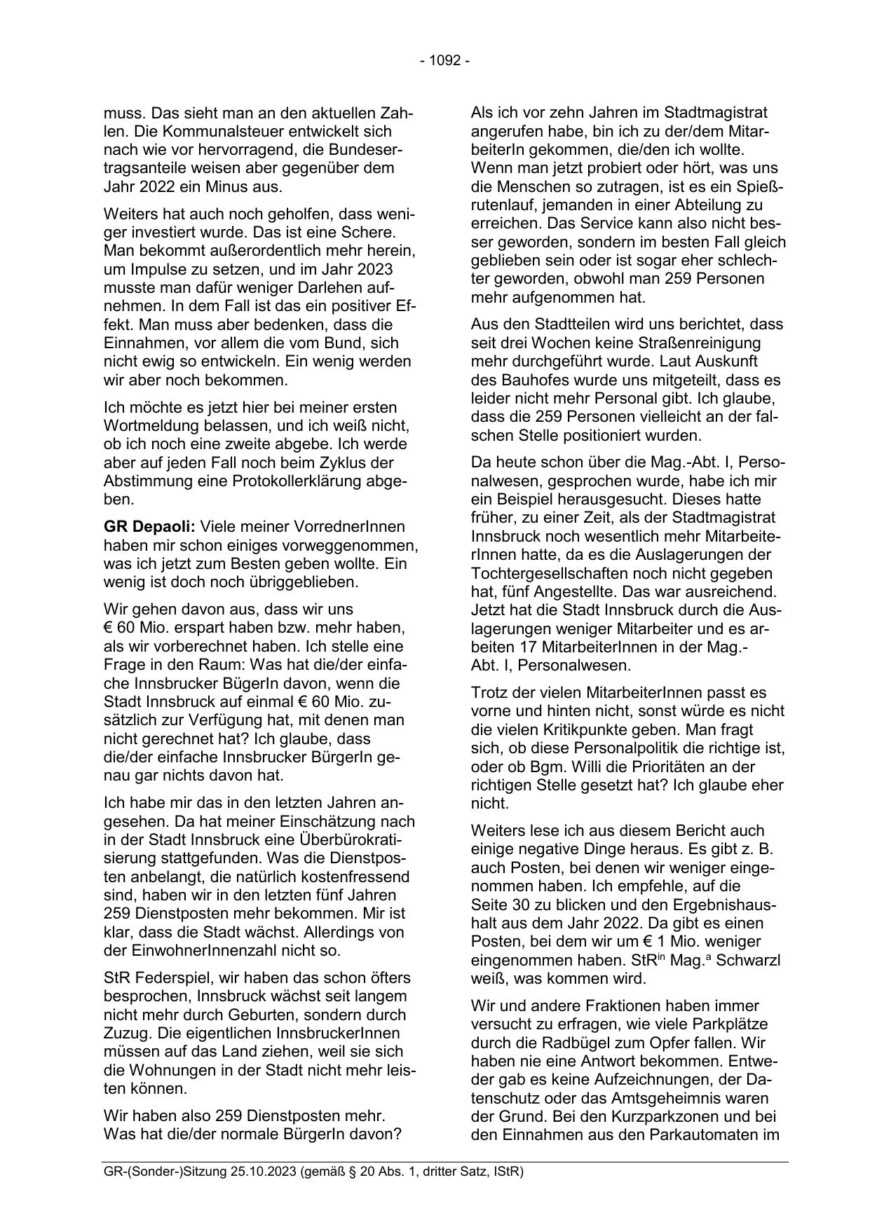 in der Stadt Innsbruck eine Überbürokratisierung stattgefunden. Was die Dienstposten anbelangt, die natürlich kostenfressend