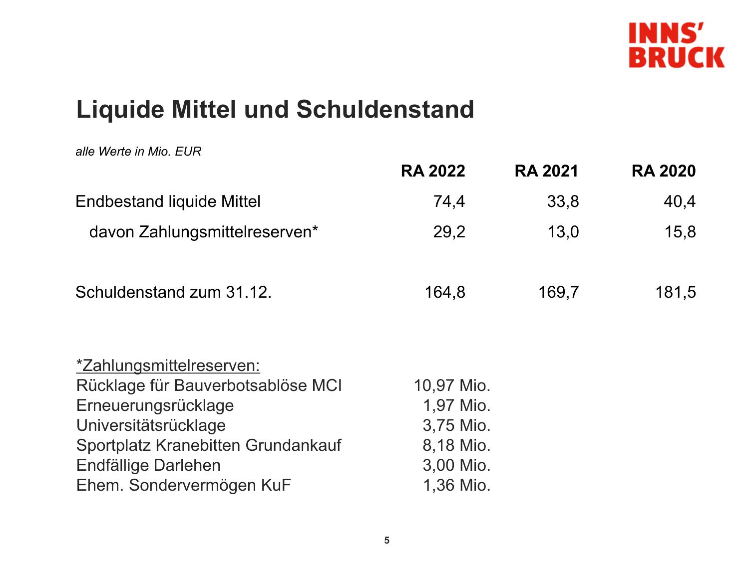*Zahlungsmittelreserven: