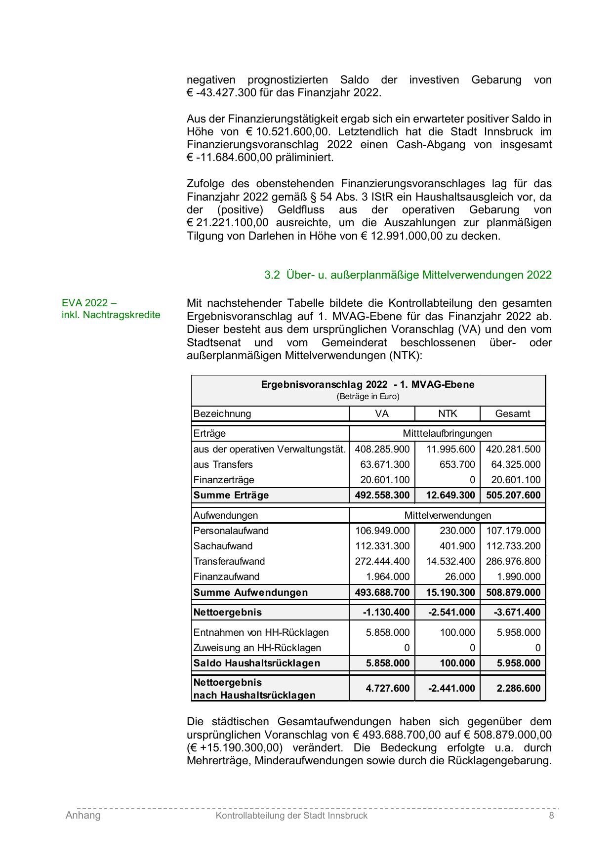 Ergebnisvoranschlag 2022 - 1. MVAG-Ebene