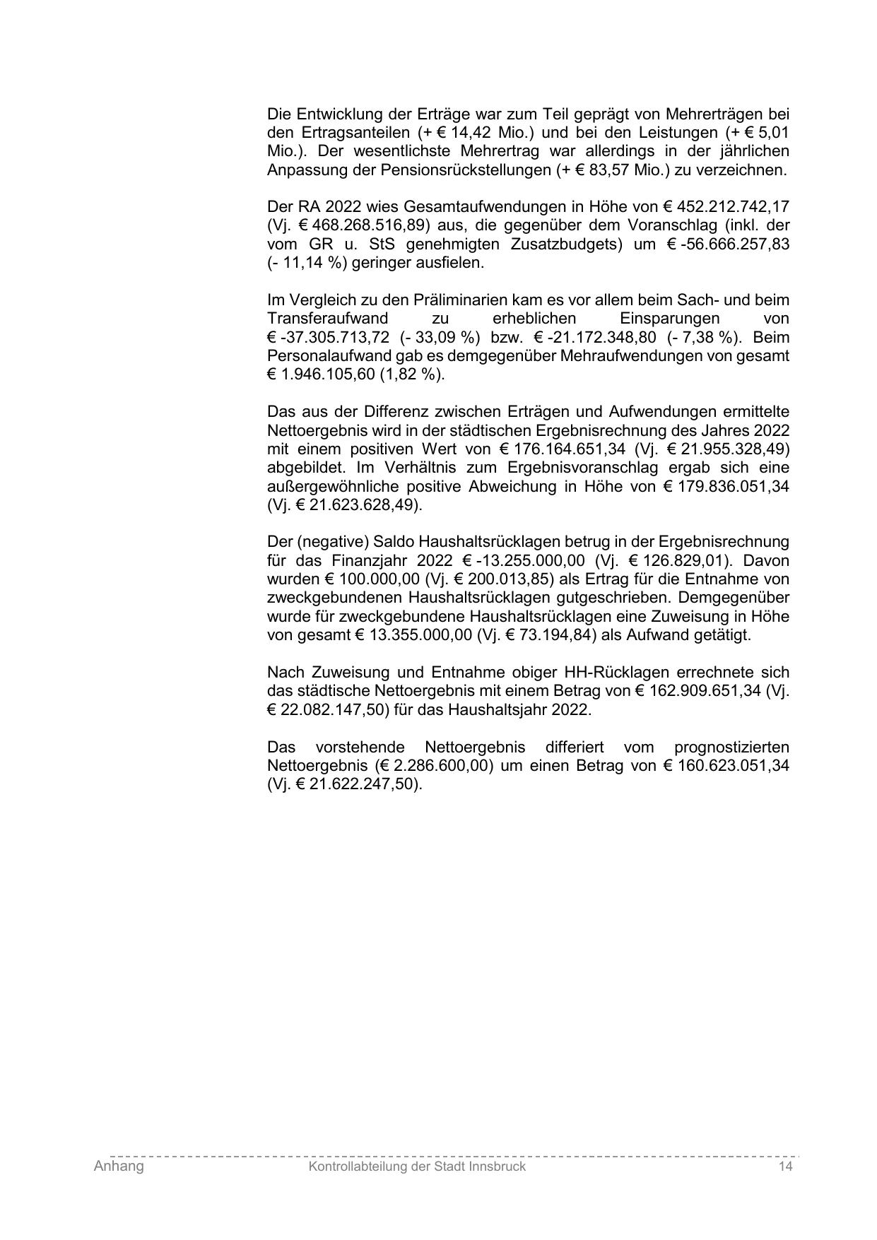 Der RA 2022 wies Gesamtaufwendungen in Höhe von € 452.212.742,17