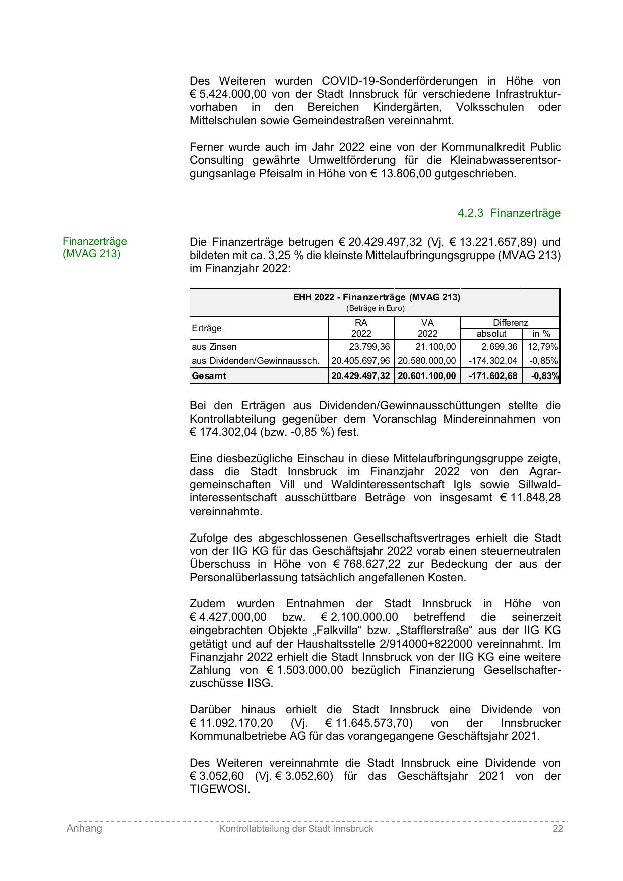 Finanzjahr 2022 erhielt die Stadt Innsbruck von der IIG KG eine weitere