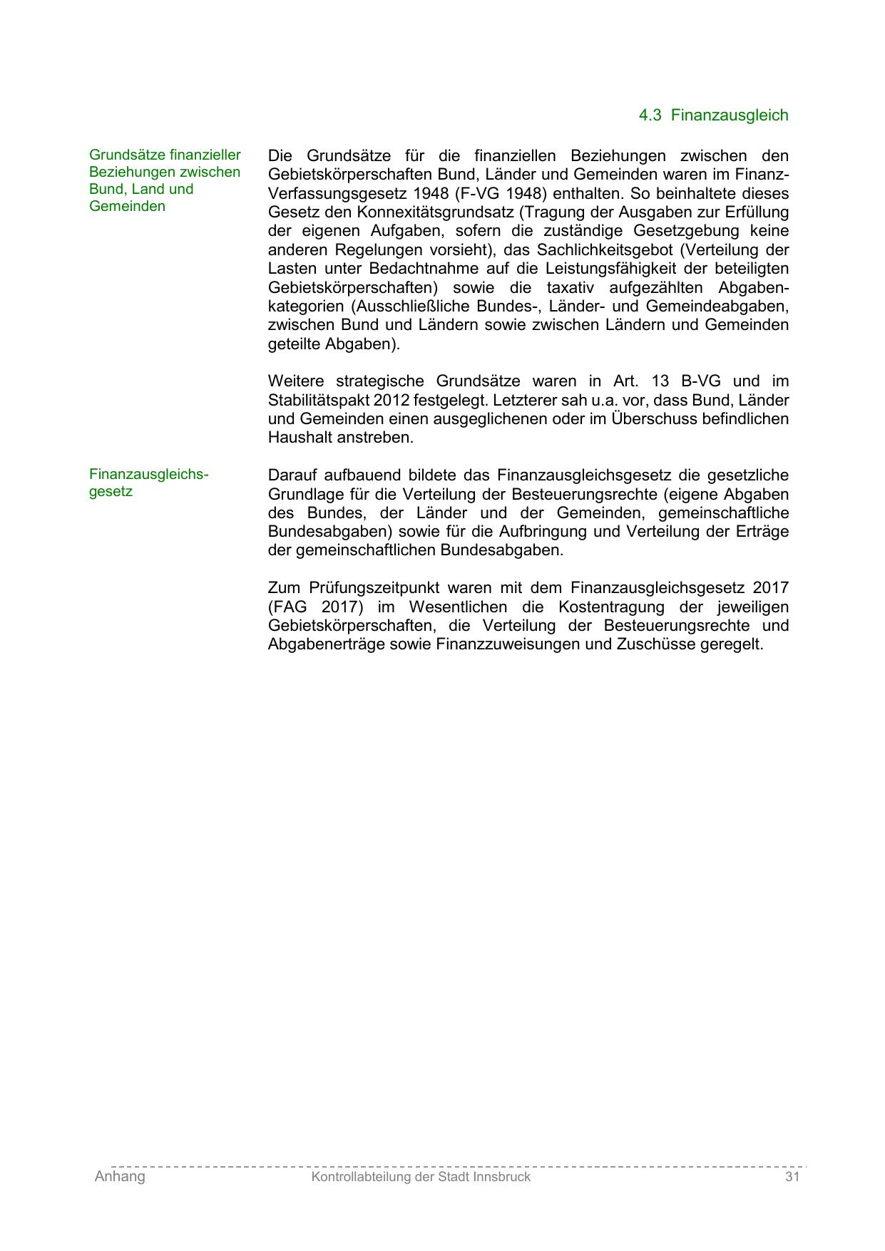 Zum Prüfungszeitpunkt waren mit dem Finanzausgleichsgesetz 2017