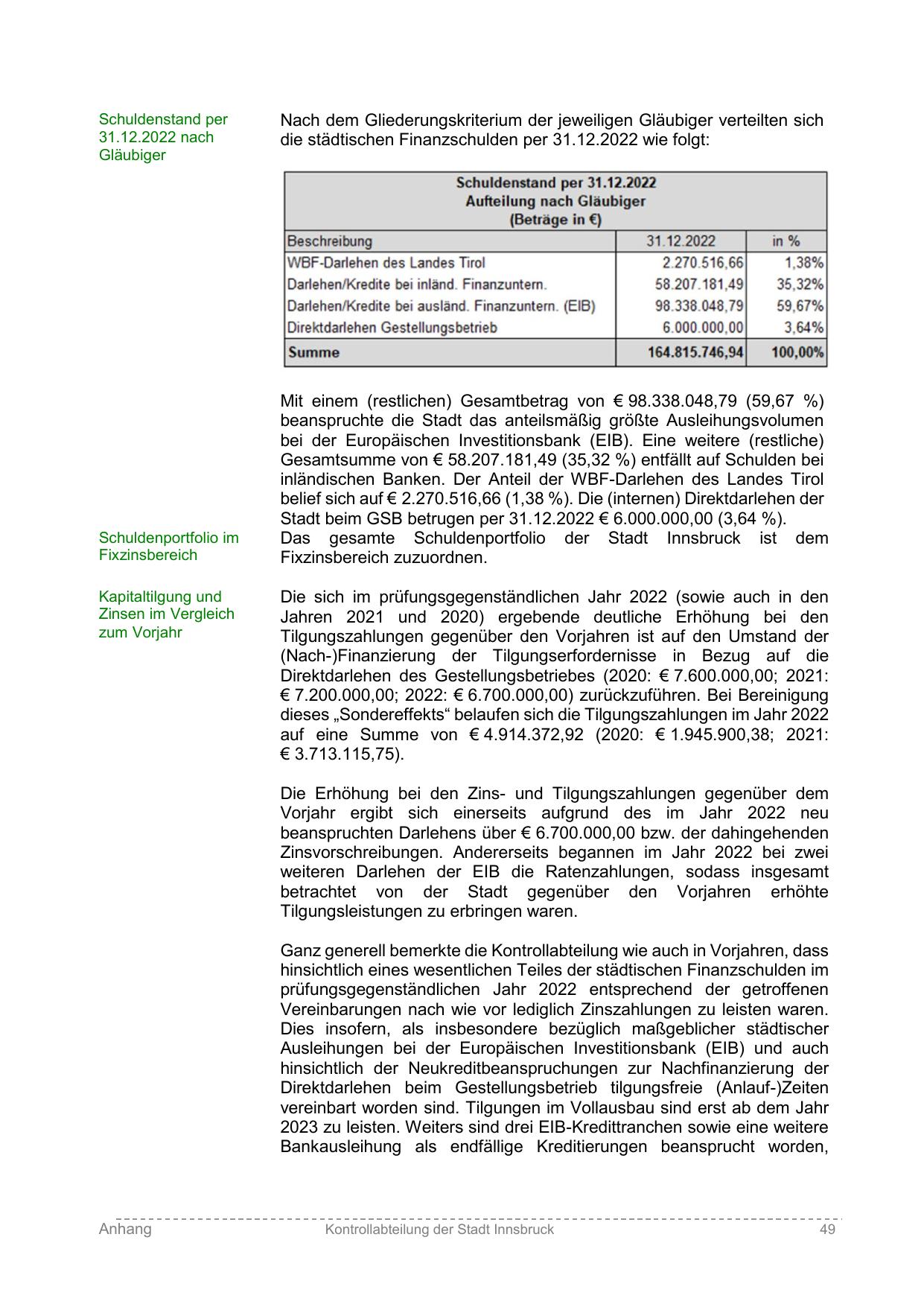 Stadt beim GSB betrugen per 31.12.2022 € 6.000.000,00 (3,64 %).