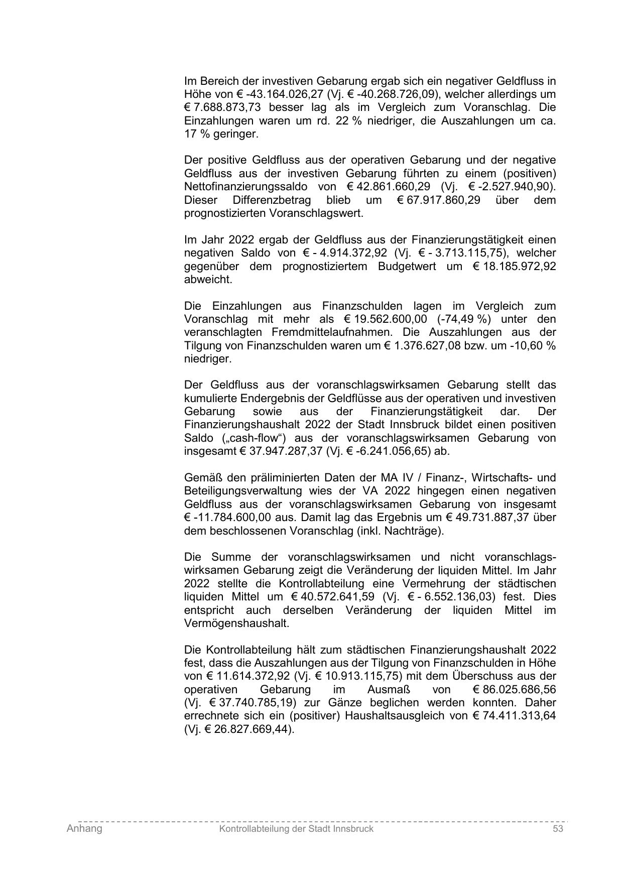 Nettofinanzierungssaldo von € 42.861.660,29 (Vj. € -2.527.940,90).