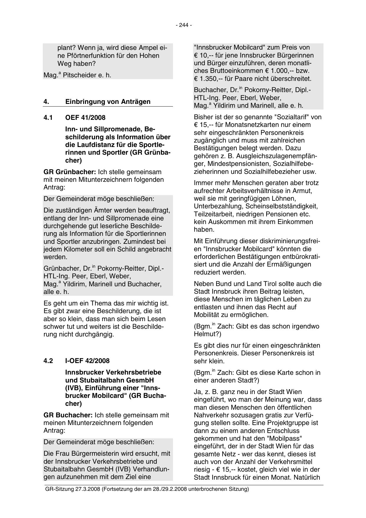 (IVB), Einführung einer "Innsbrucker Mobilcard" (GR Buchacher)