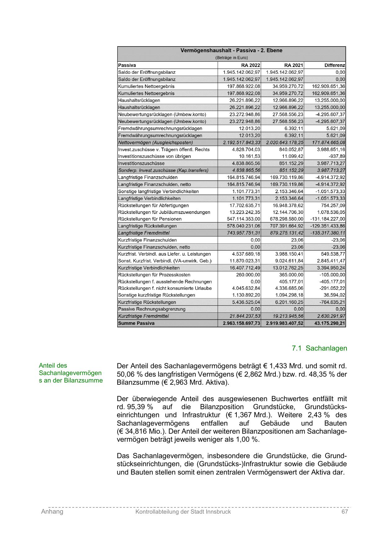 rd. 95,39 % auf die Bilanzposition Grundstücke, Grundstückseinrichtungen und Infrastruktur (€ 1,367 Mrd.). Weitere 2,43 % des