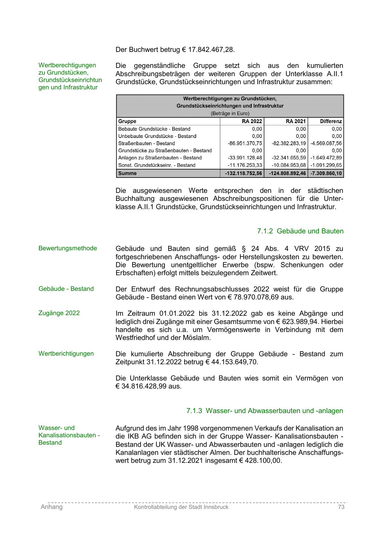 Die Unterklasse Gebäude und Bauten wies somit ein Vermögen von