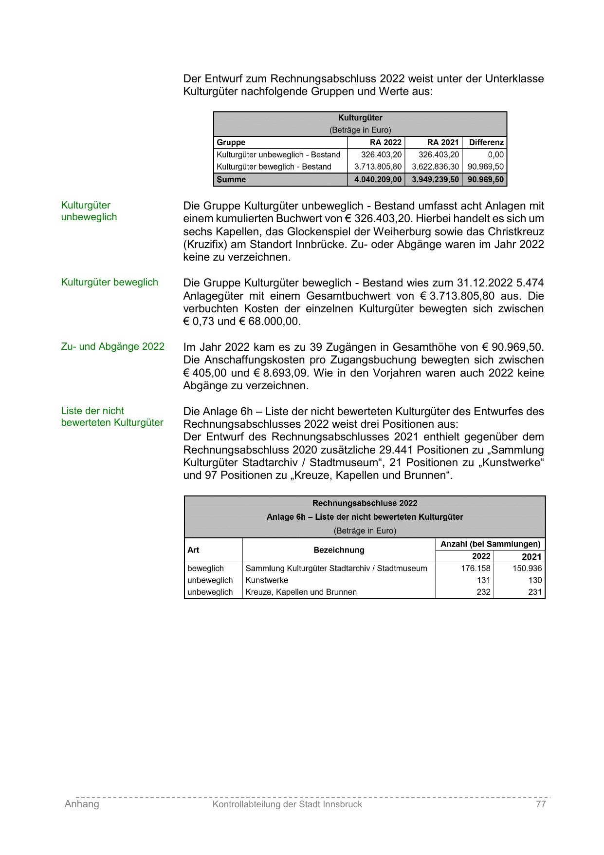 Die Gruppe Kulturgüter beweglich - Bestand wies zum 31.12.2022 5.474