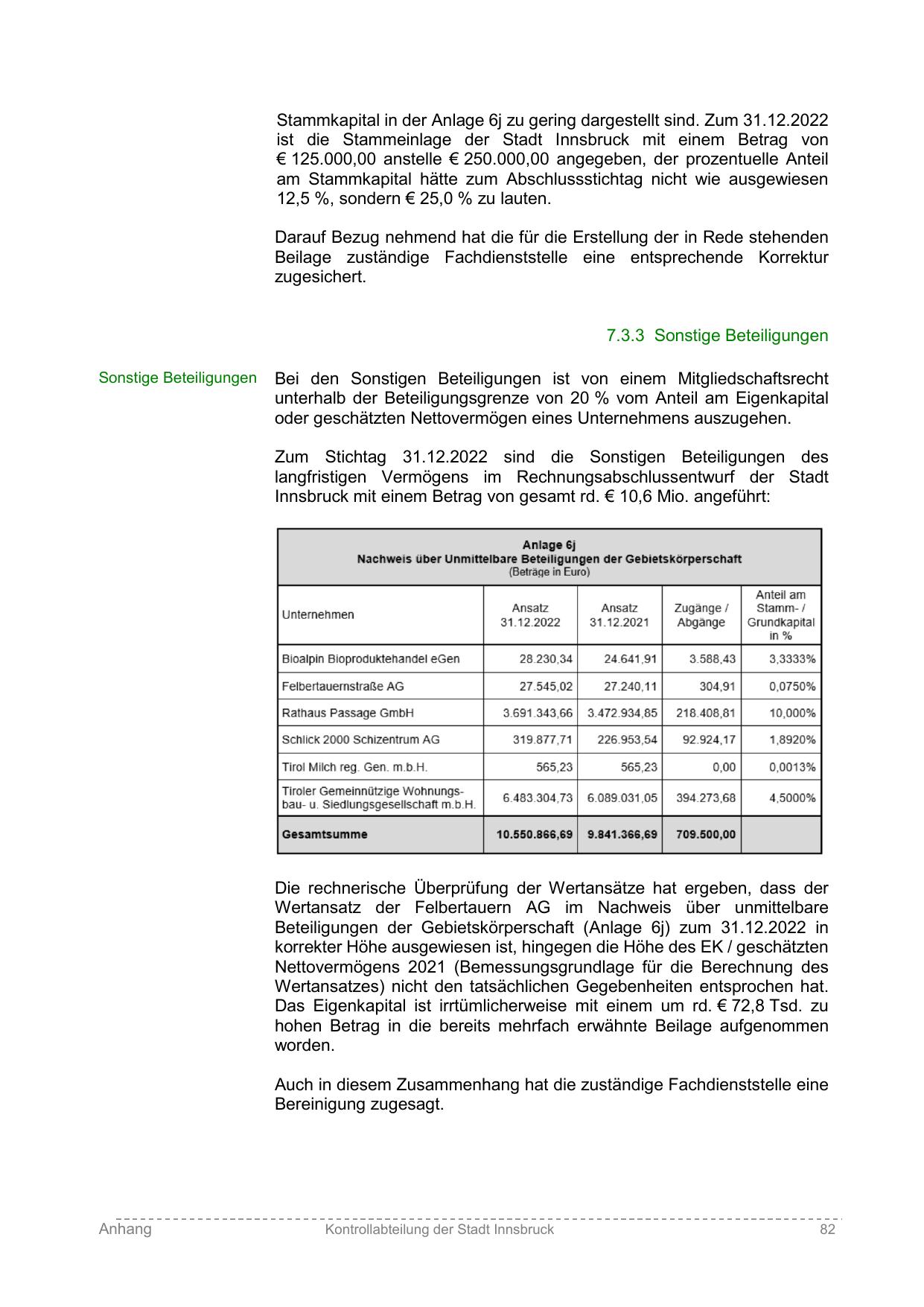 Stammkapital in der Anlage 6j zu gering dargestellt sind. Zum 31.12.2022