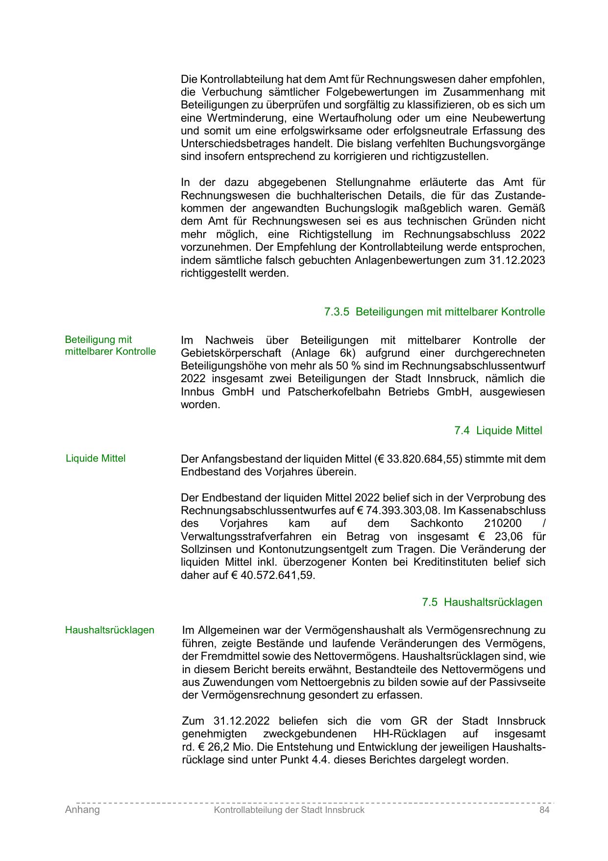 Zum 31.12.2022 beliefen sich die vom GR der Stadt Innsbruck
