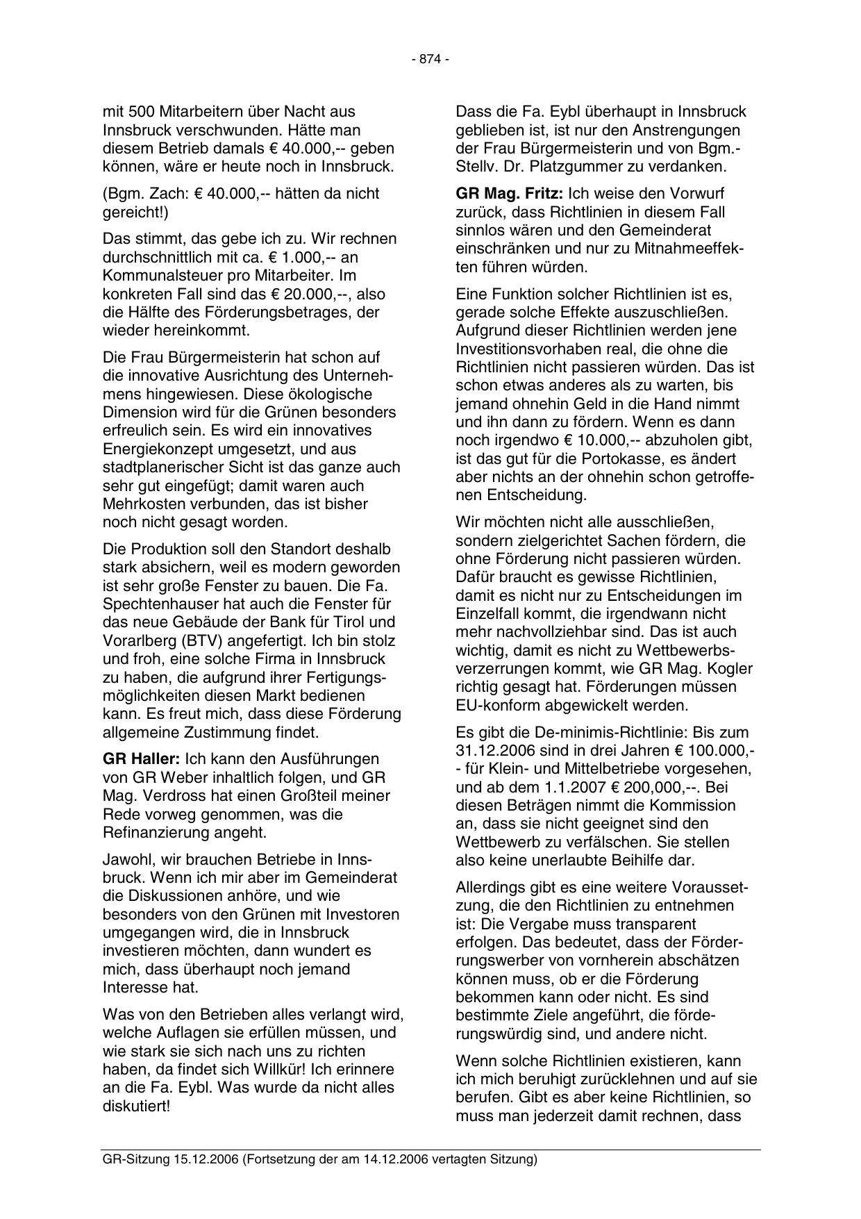 GR-Sitzung 15.12.2006 (Fortsetzung der am 14.12.2006 vertagten Sitzung)