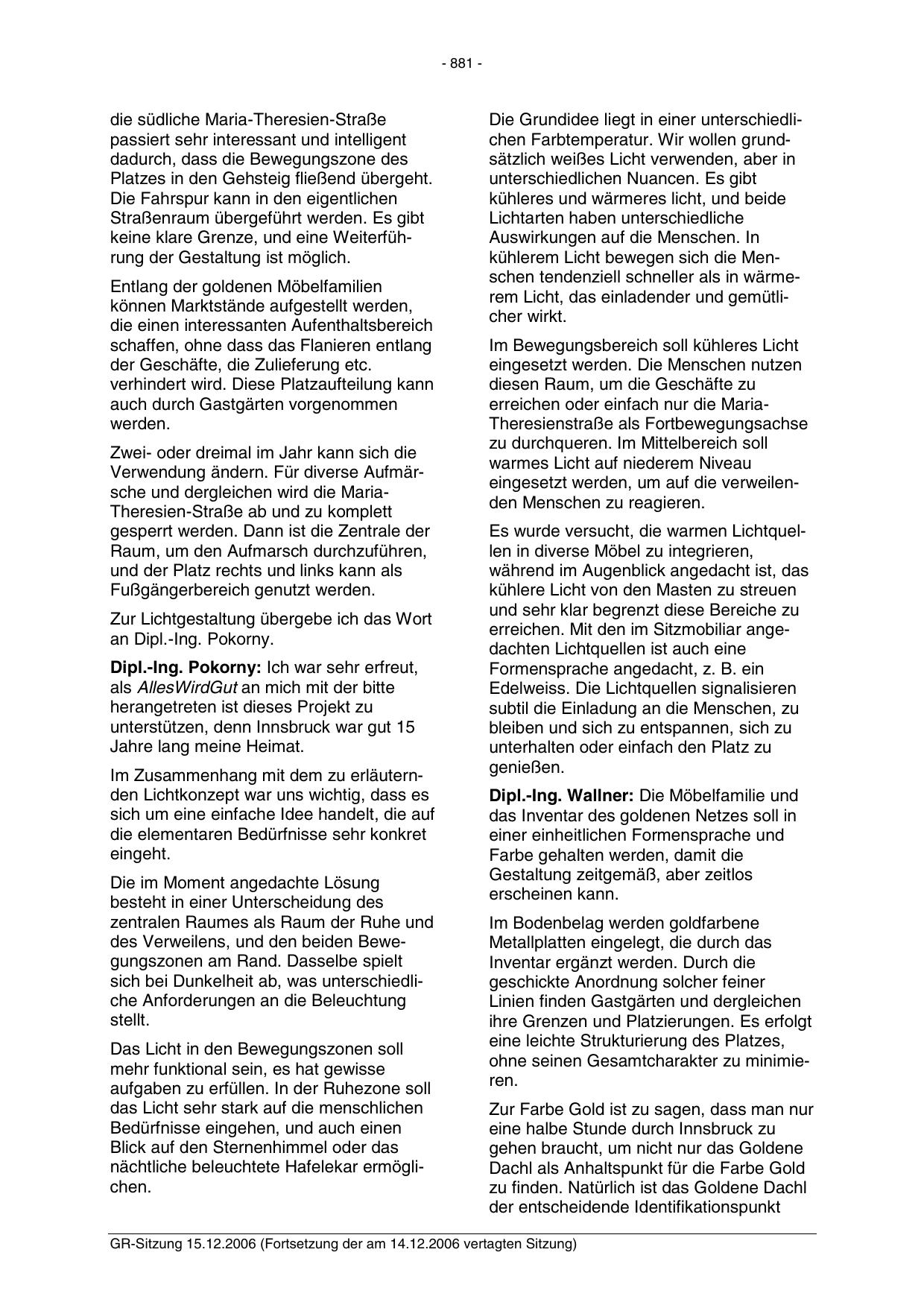 GR-Sitzung 15.12.2006 (Fortsetzung der am 14.12.2006 vertagten Sitzung)