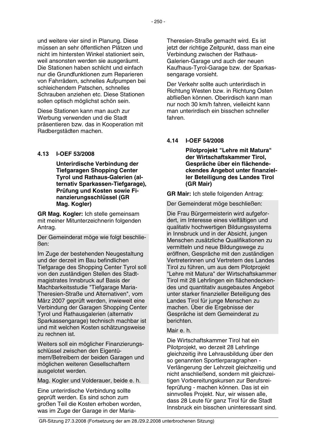 GR-Sitzung 27.3.2008 (Fortsetzung der am 28./29.2.2008 unterbrochenen Sitzung)