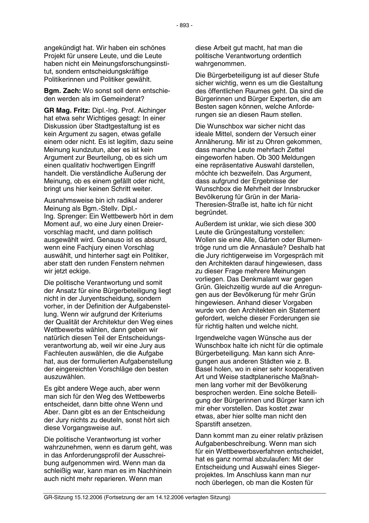 GR-Sitzung 15.12.2006 (Fortsetzung der am 14.12.2006 vertagten Sitzung)