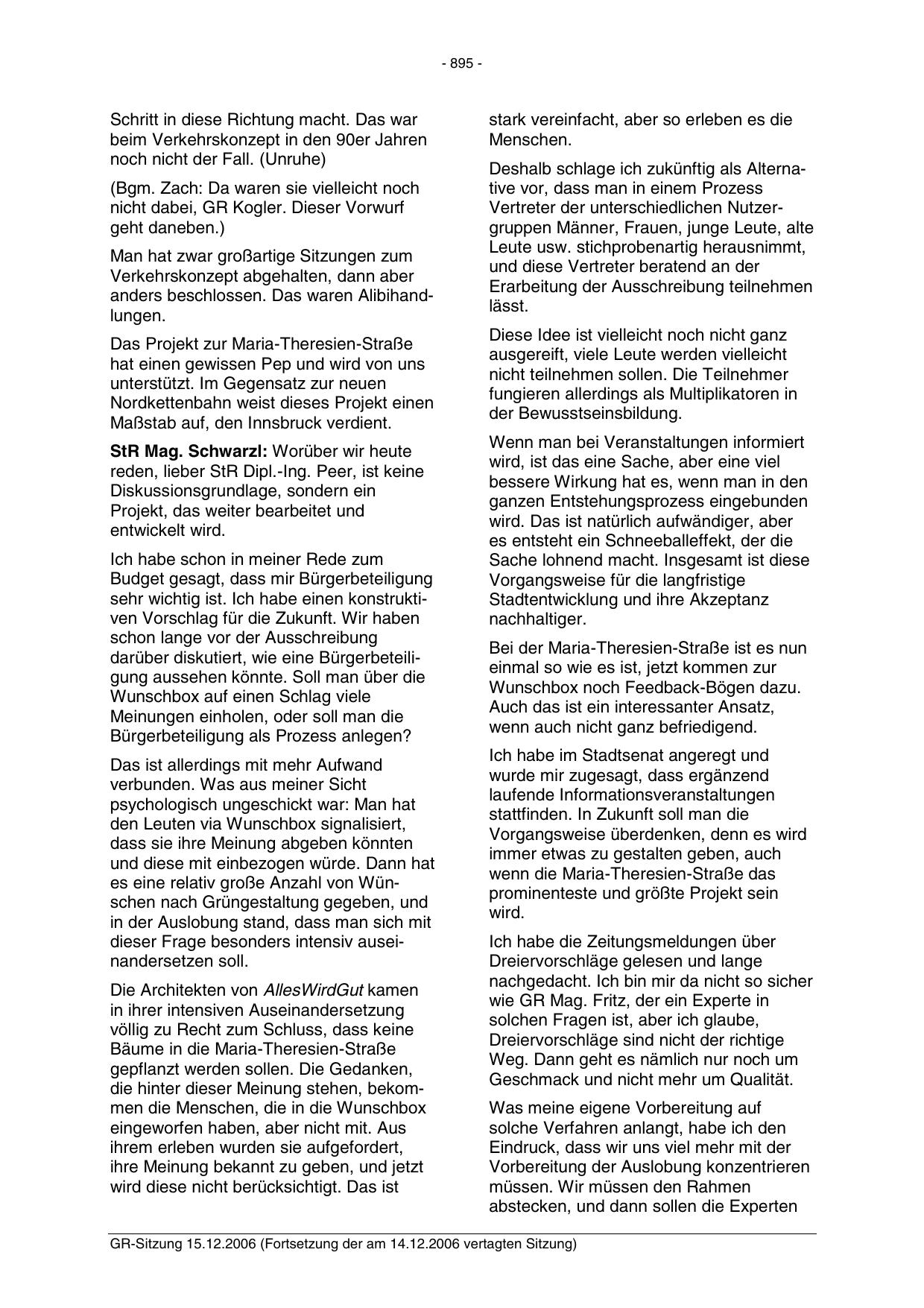 GR-Sitzung 15.12.2006 (Fortsetzung der am 14.12.2006 vertagten Sitzung)